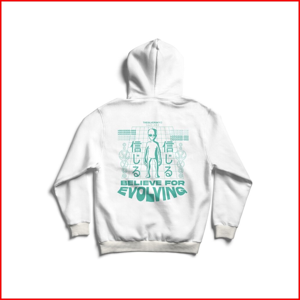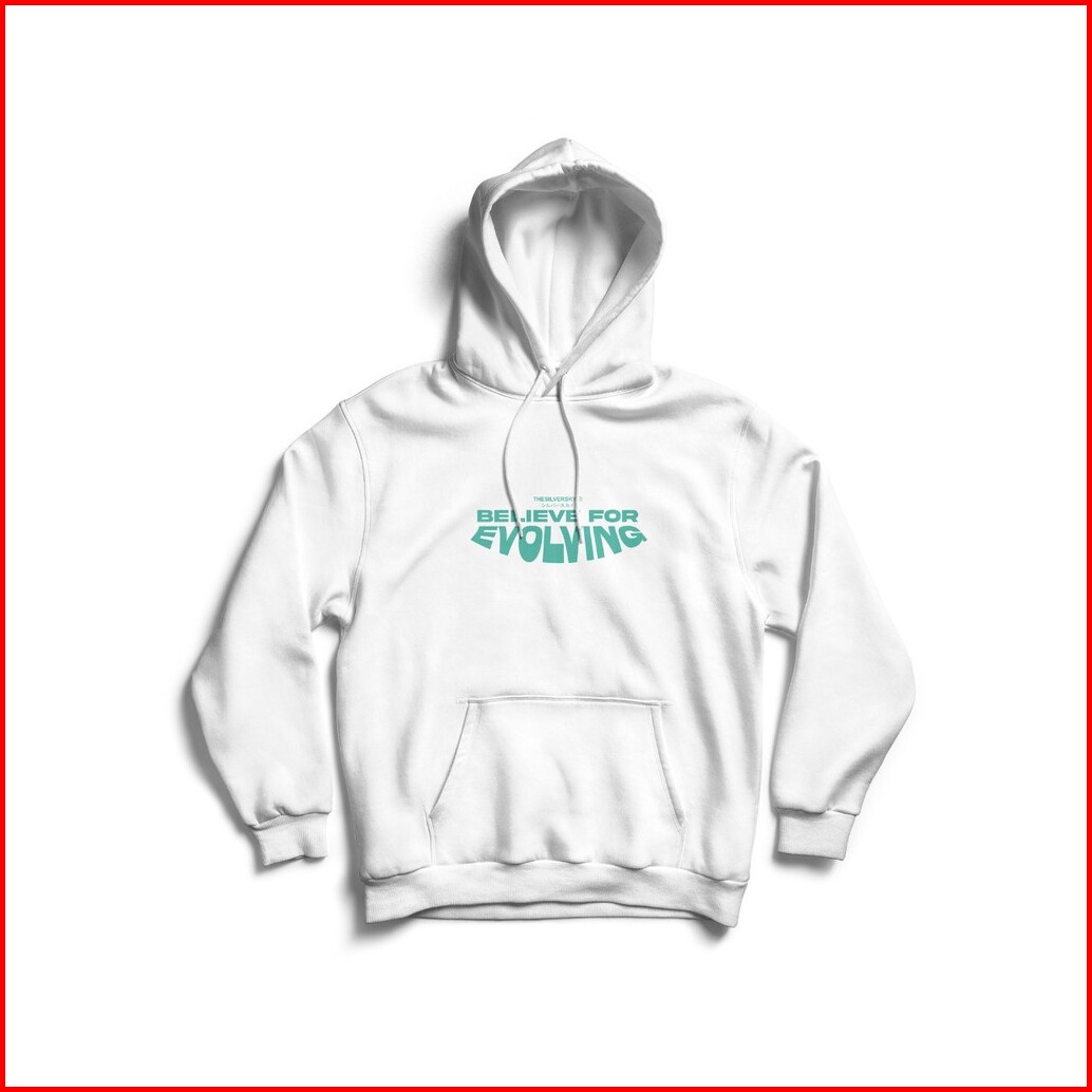 Thesilversky Believe For Evolving White Hoodie Tosca Font