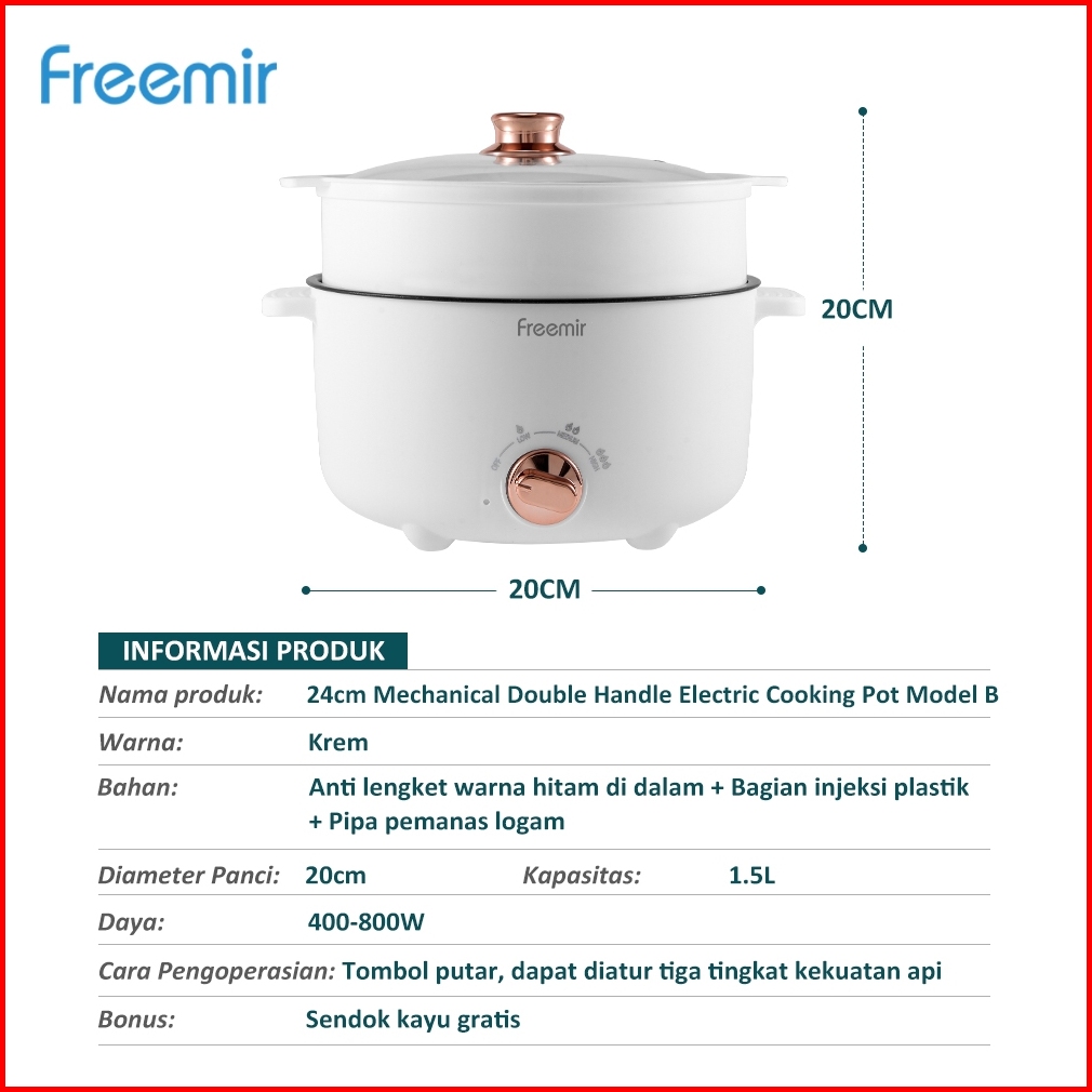 New Freemir Panci Listrik Elektrik 24 Cm 2.5 Liter Anti Lengket Multifungsi Electric Hot Pots