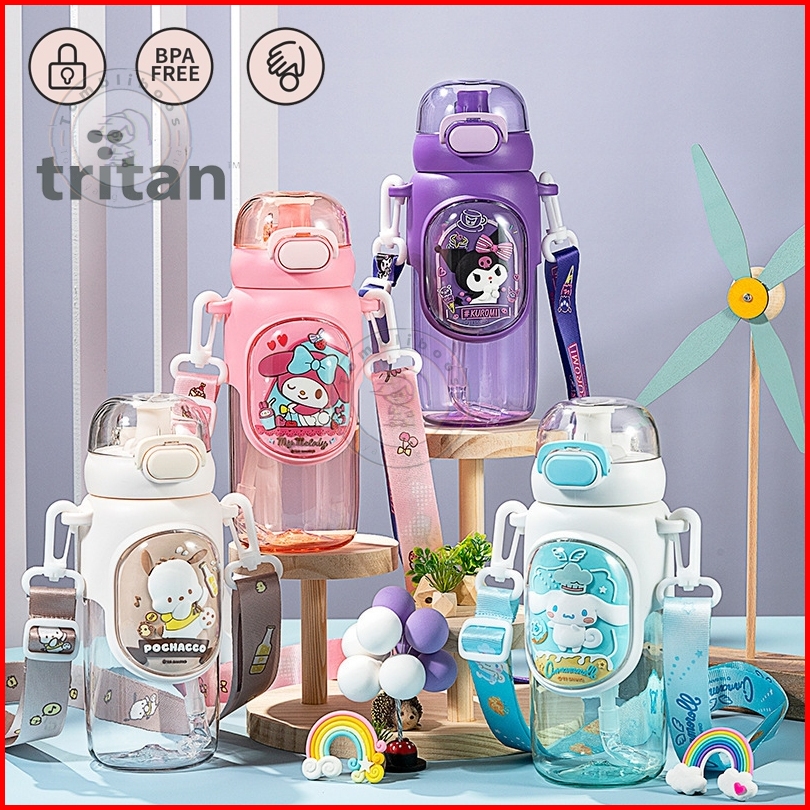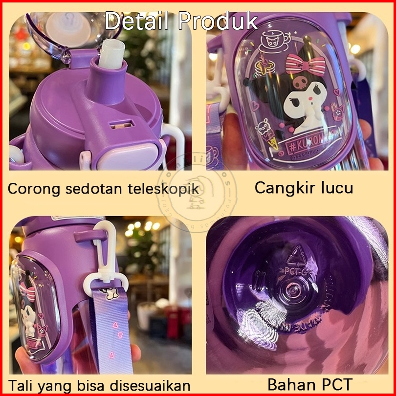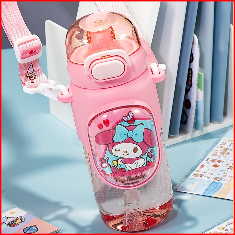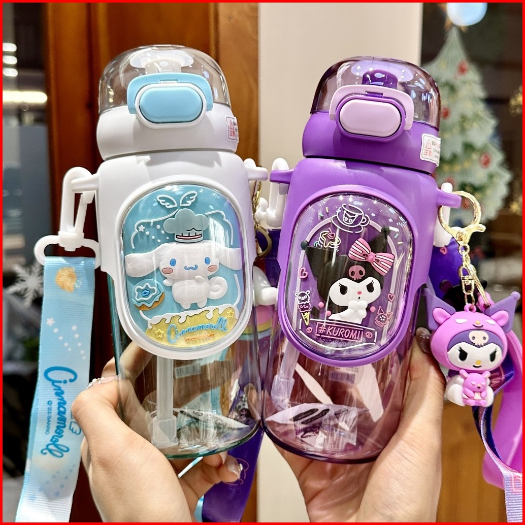 600ml Botol Minum Anak Tritan Sedot Teguk Kuromi Melody Cinnamoroll Termasuk Tali Pengikat