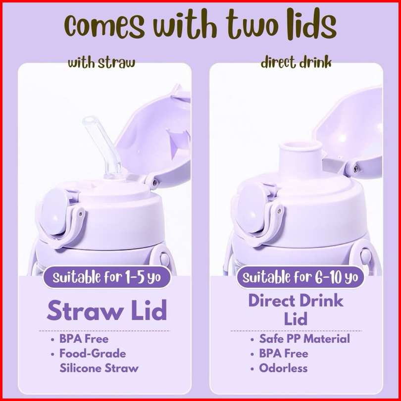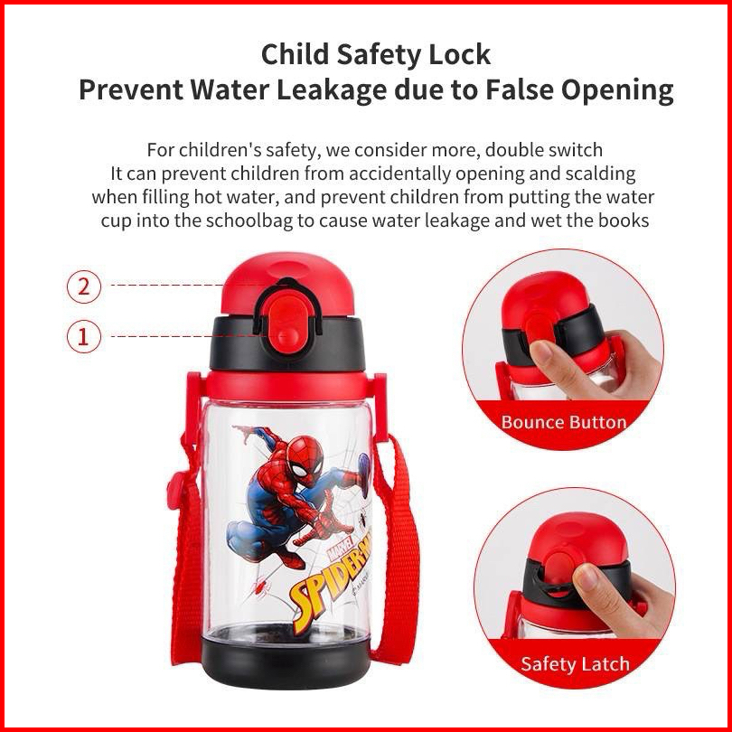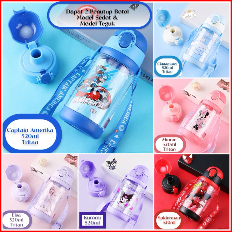 Botol Minum Anak 2 Penutup Botol Sedot Dan Teguk 520ml Tritan Bonus Tali Bpa Free Motif Spiderman Kuromi Elsa Cinnamorol