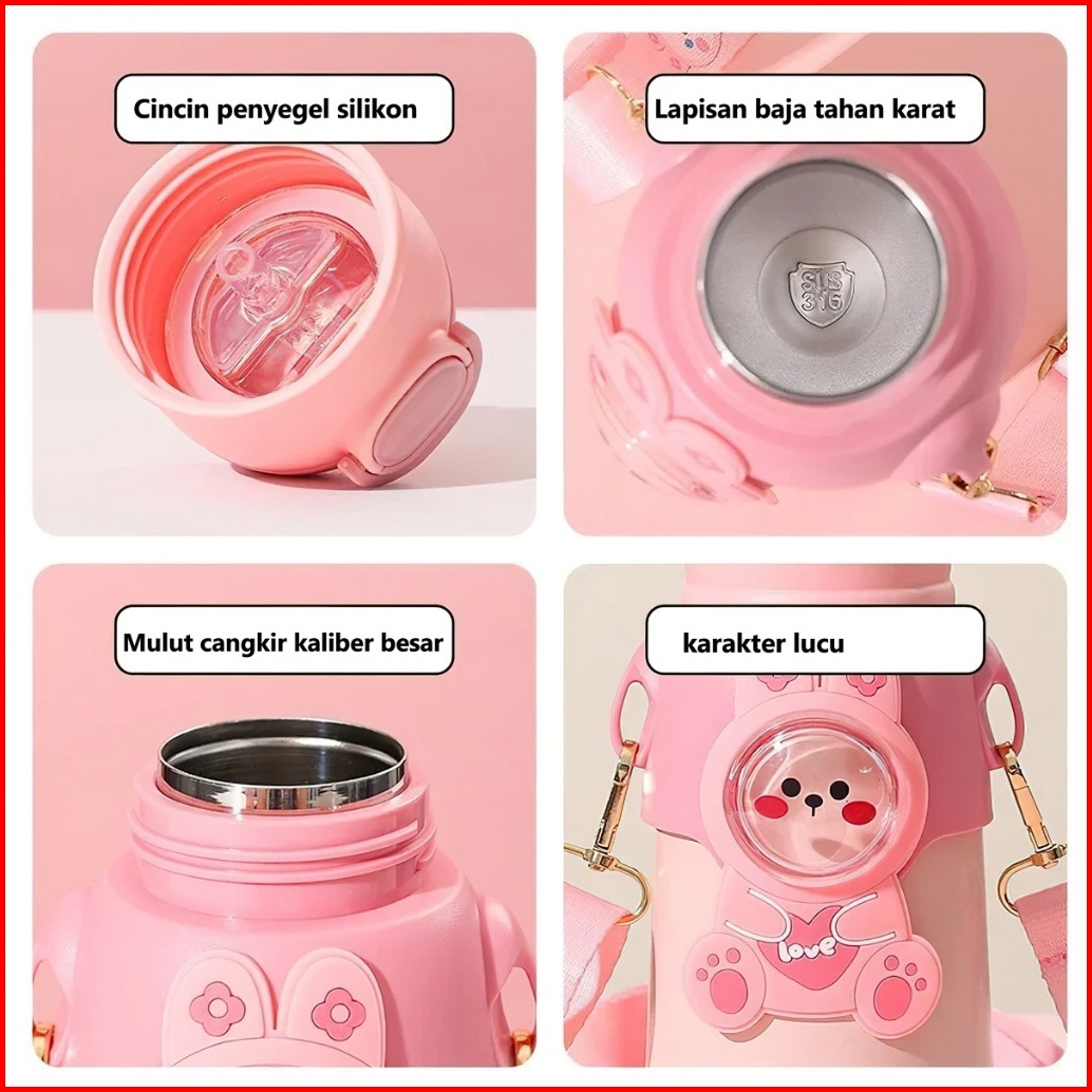 Botol Minum Anak Olahraga Kartun Lucu 520 Ml Free Sedotan Dan Tali Botol-2437