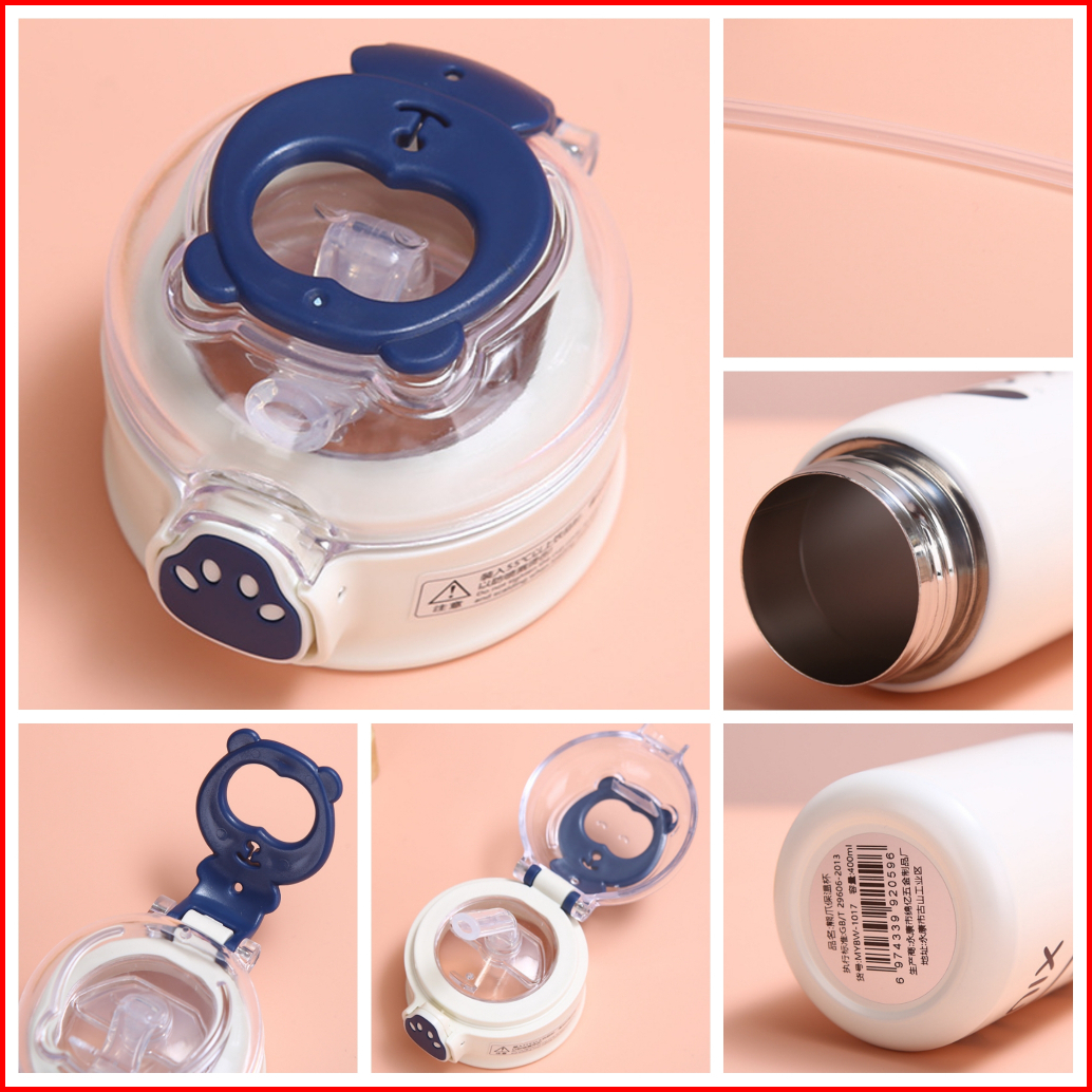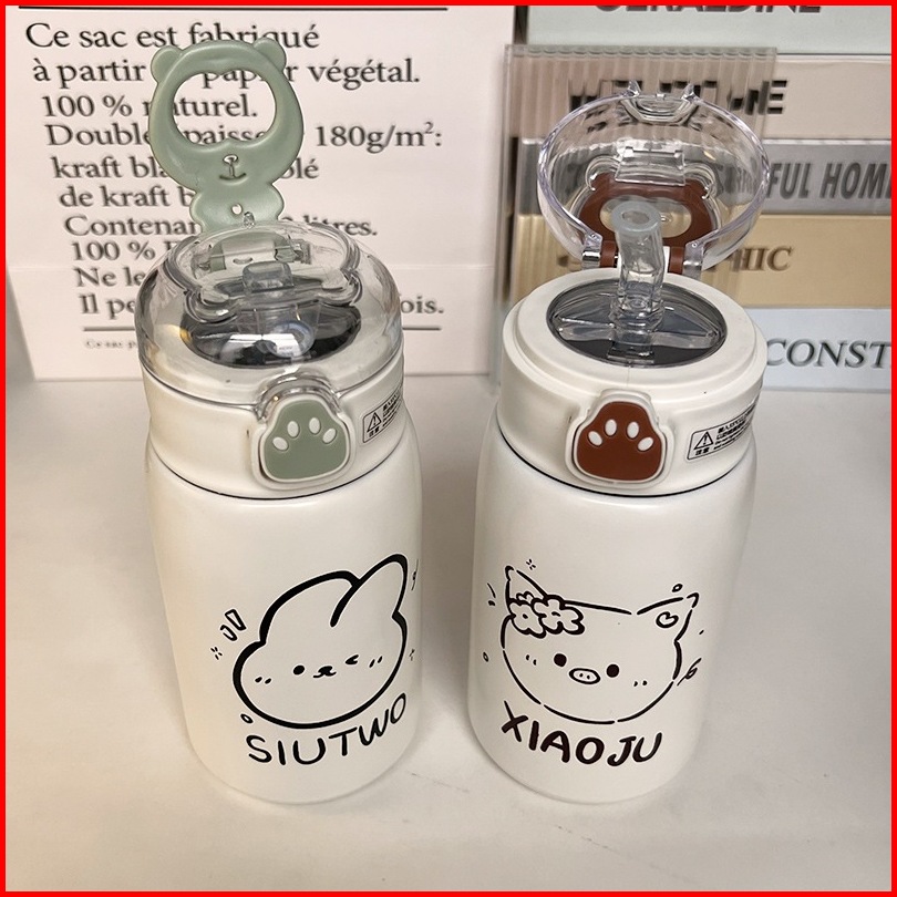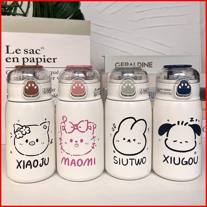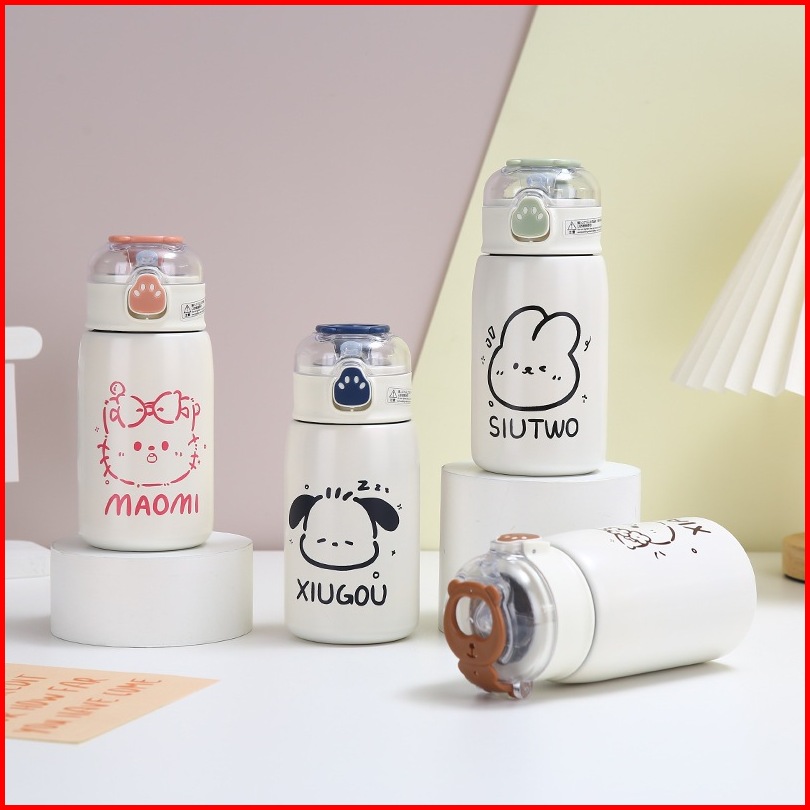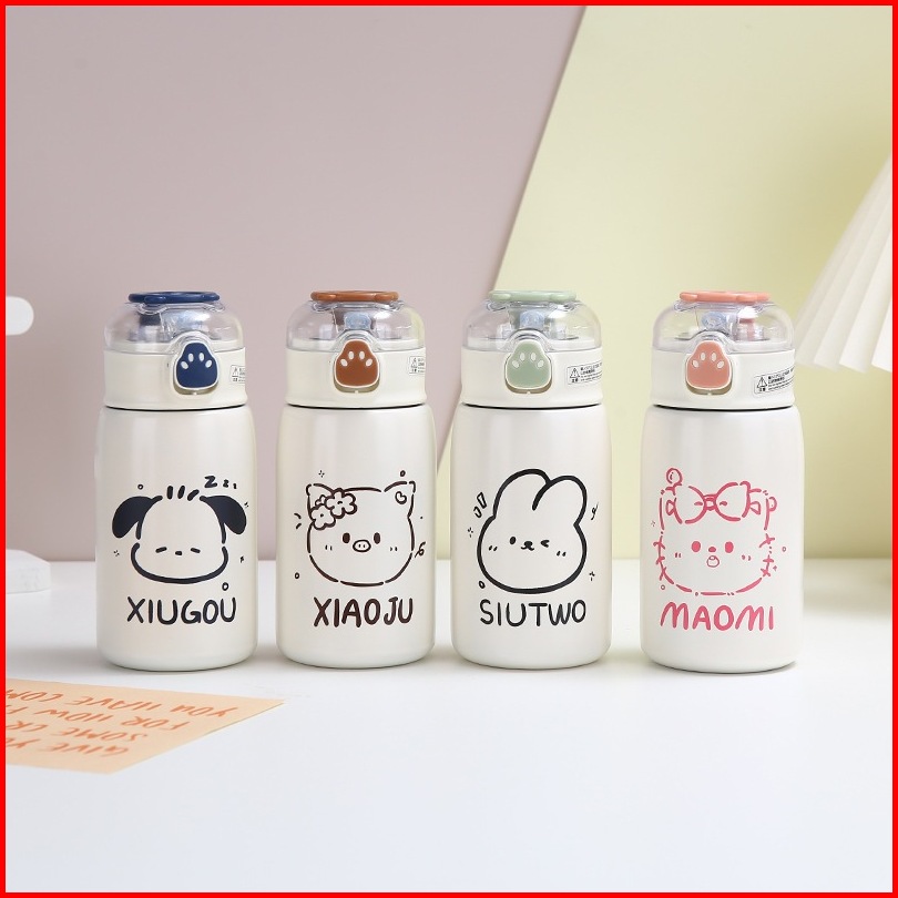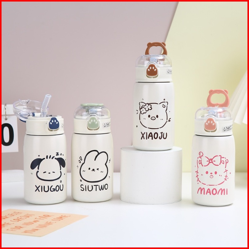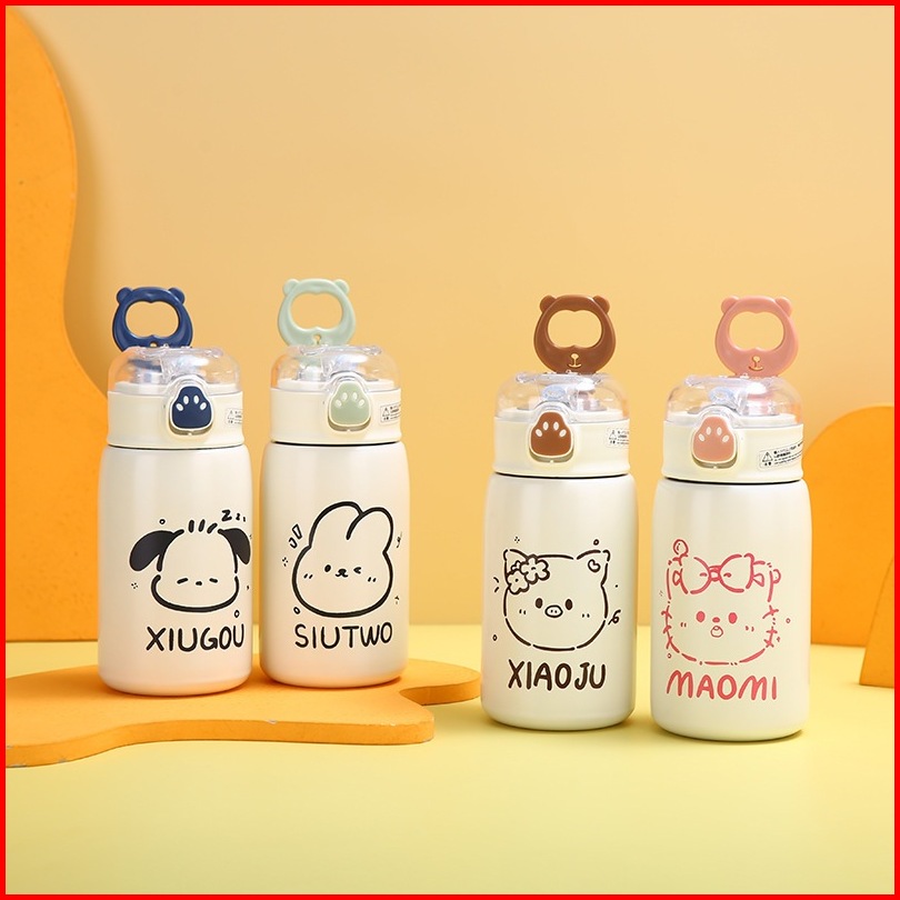 Tumbler Termos Mini Motif Animal Dengan Sedotan Vacuum Cup Hot Cool 400 Ml Stainless Steel 316 Botol Minum Termos Air An