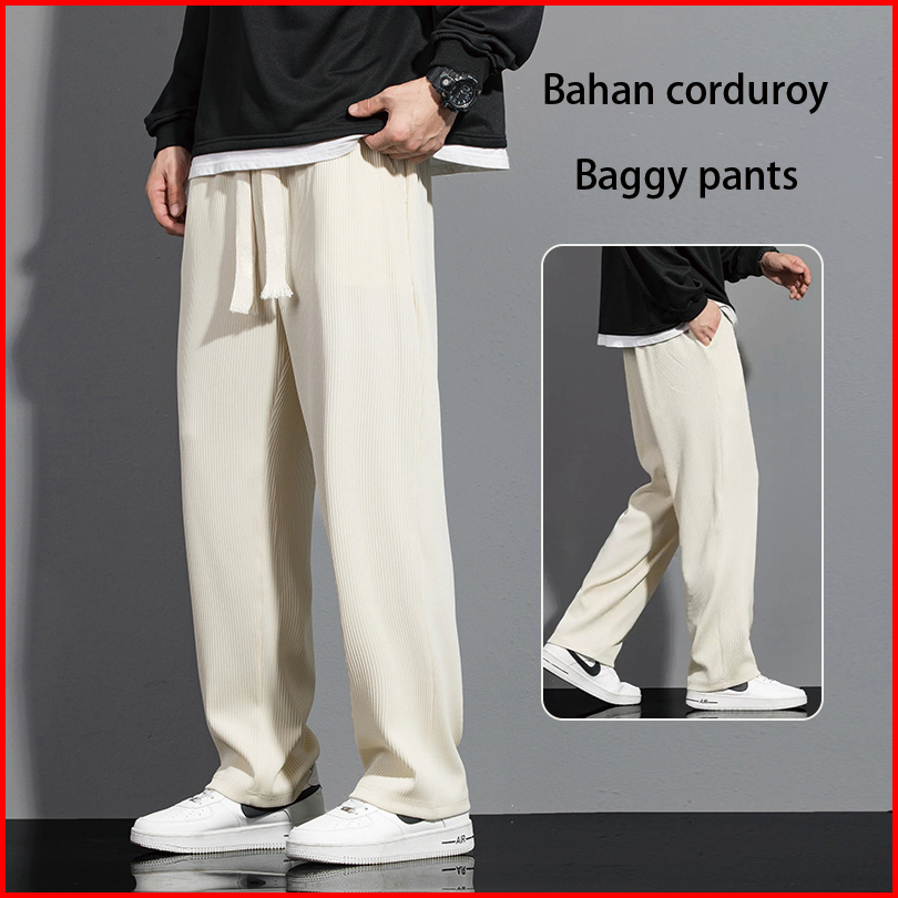 Celana Corduroy Pria Panjang Baggy Pants Korean Style Casual Pinggang Karet Gombrong Dewasa Cowok