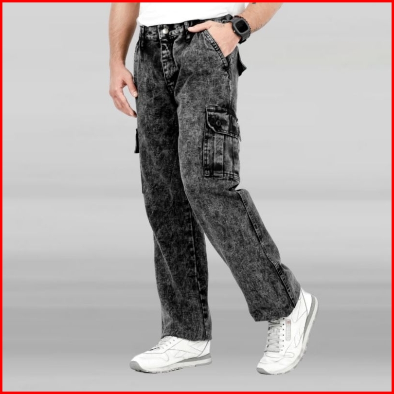 Celana Cargo Jeans Pria Loose Fit Reguler Cargo Pants Jeans Reguler Standard Denim