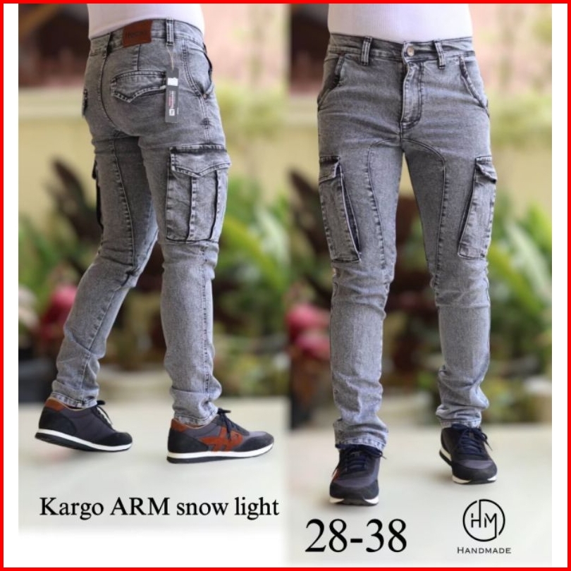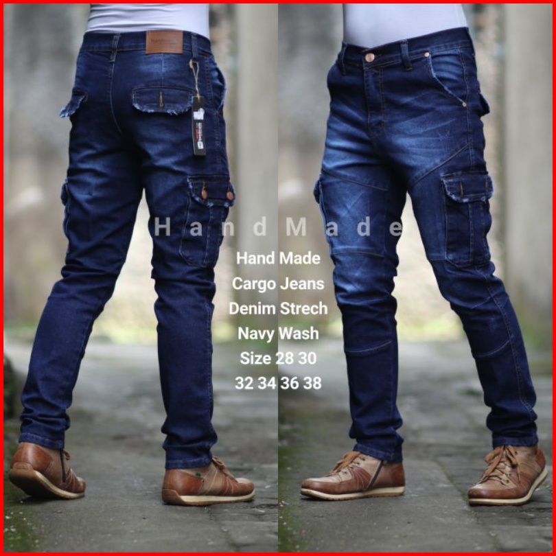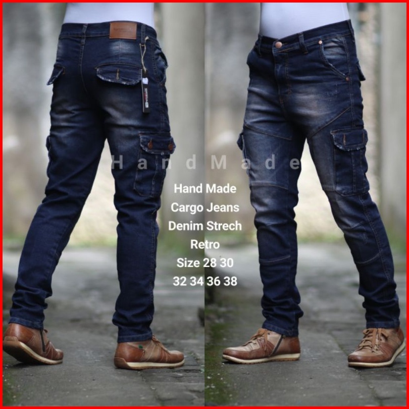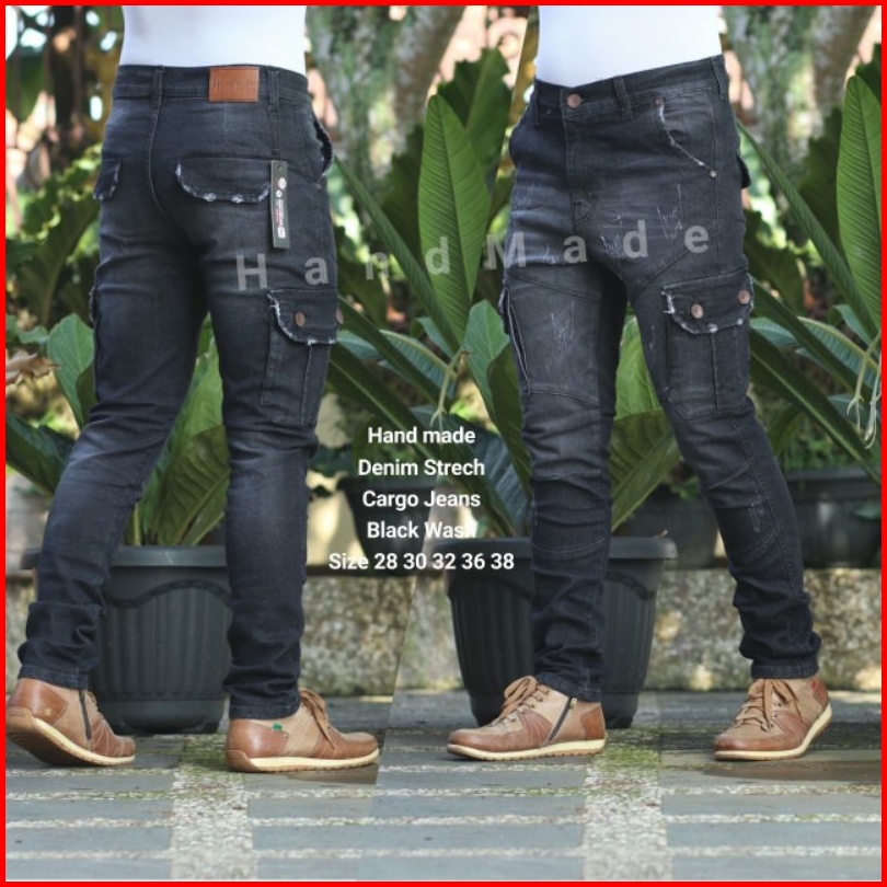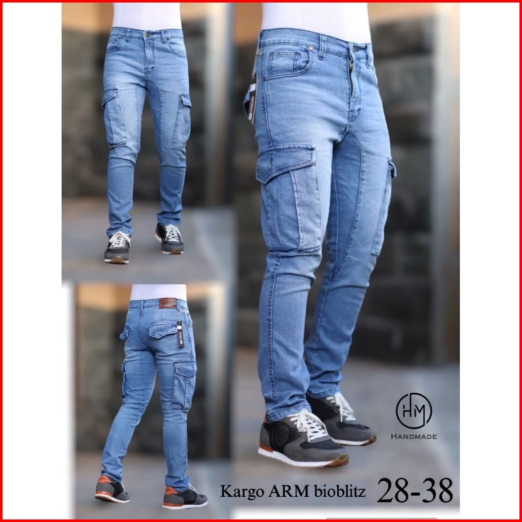 Celana Pria Cargo Jeans Sobek Ripped Strech