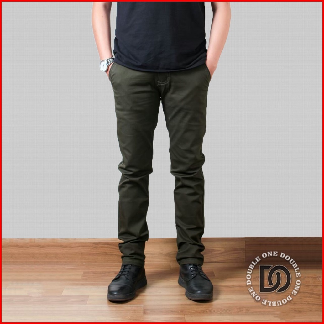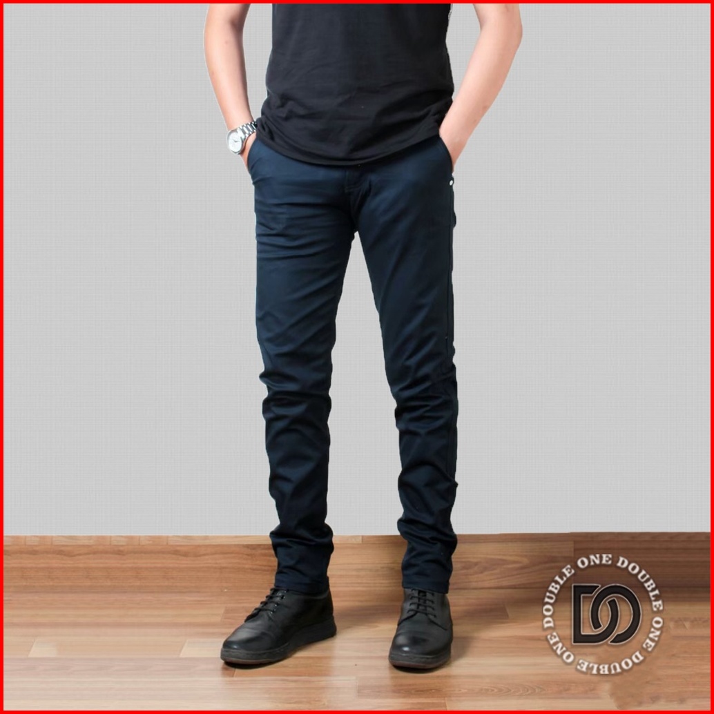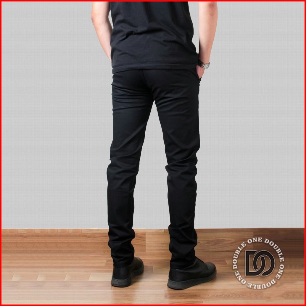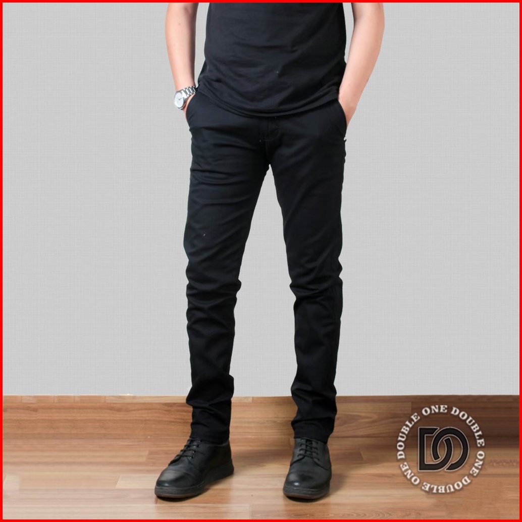 Double One - Celana Chino Panjang Slimfit Hitam Celana Chino Stretch Celana Panjang Pria Celana Chino Premium