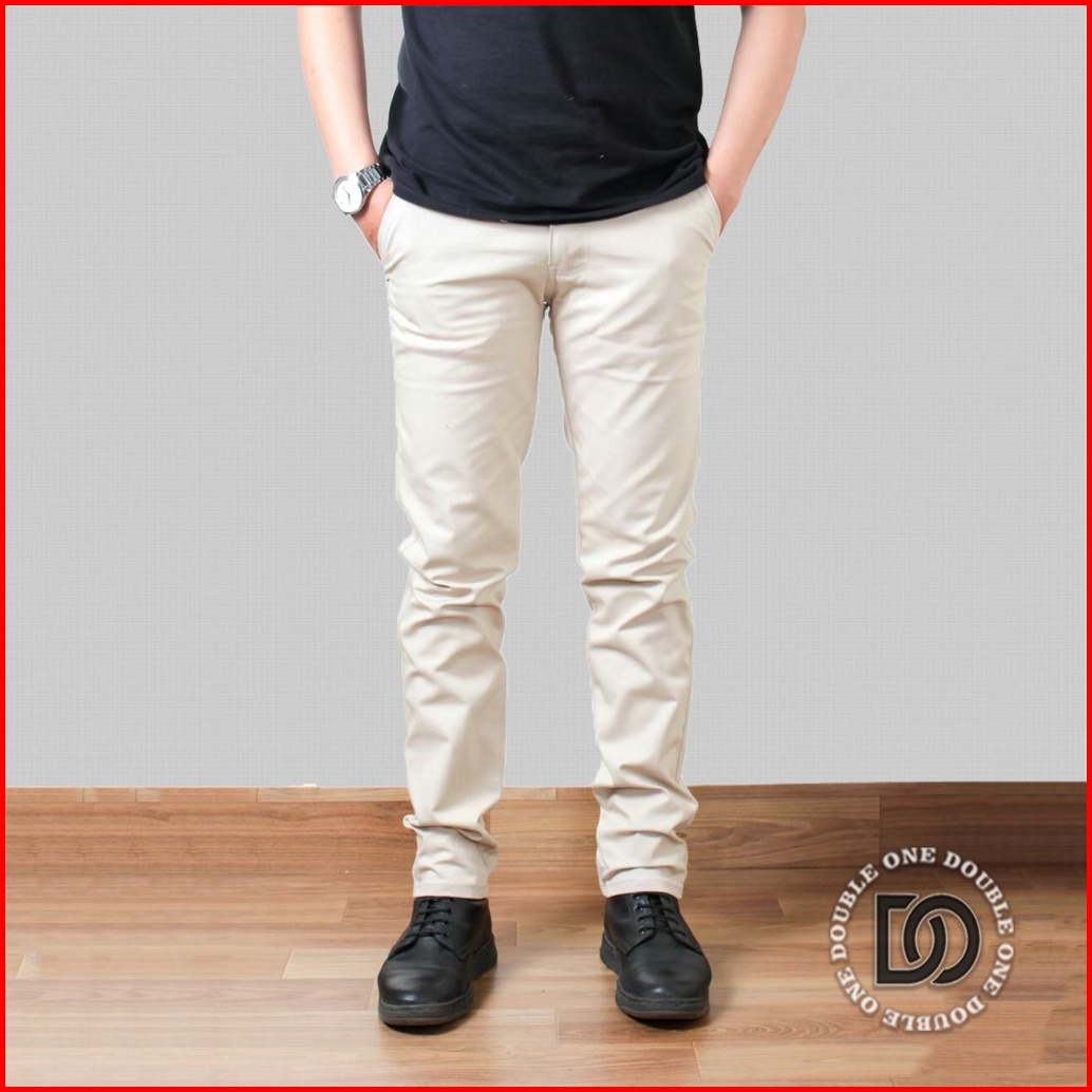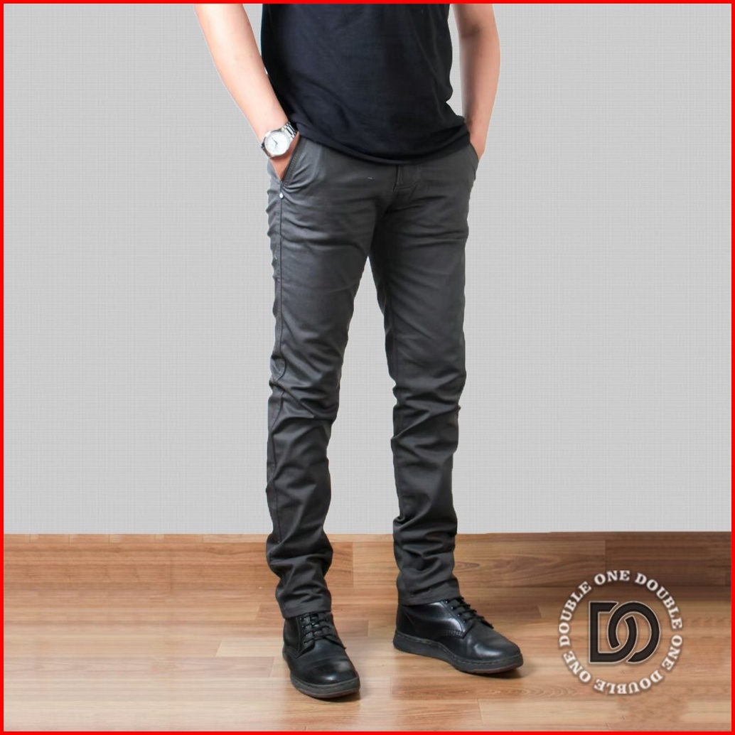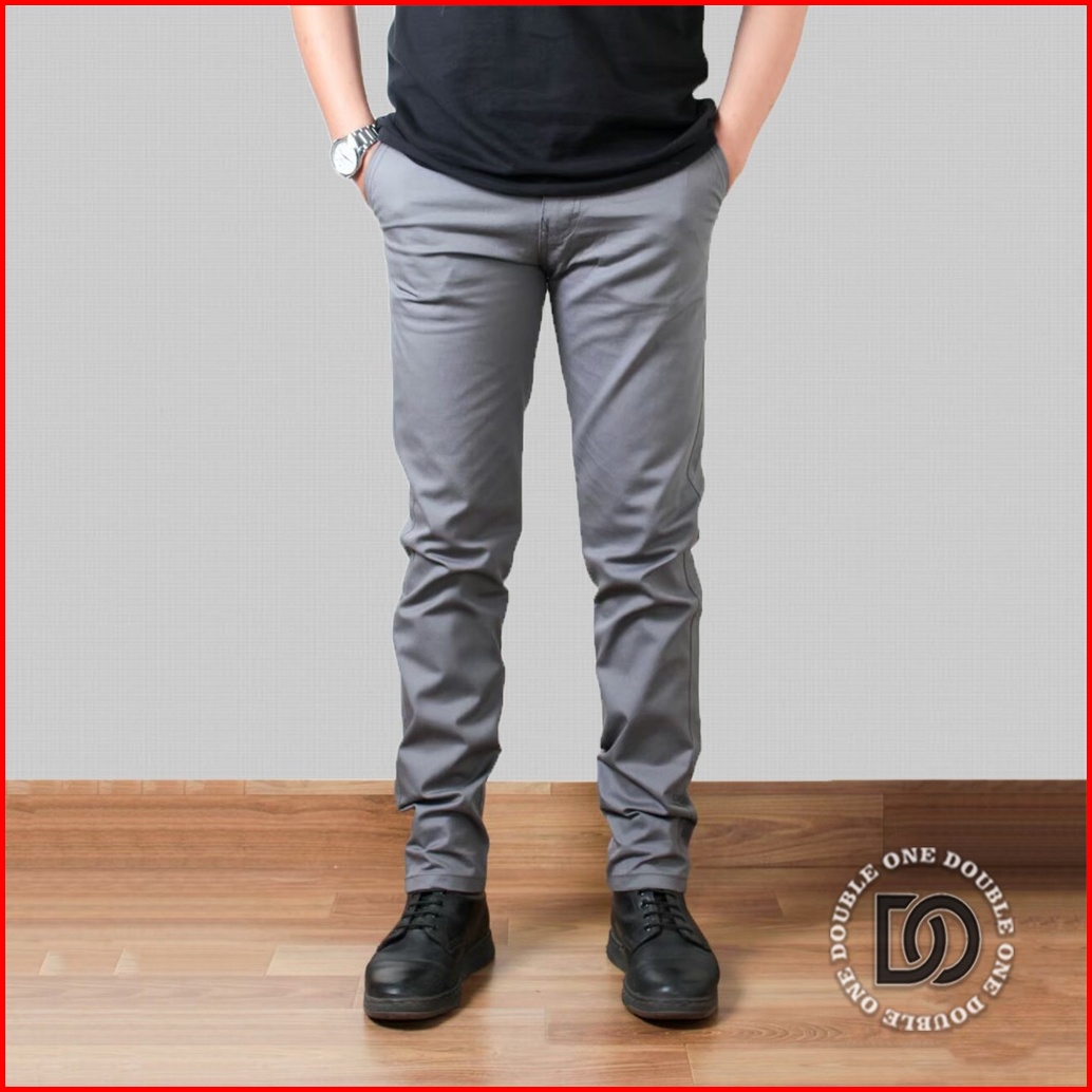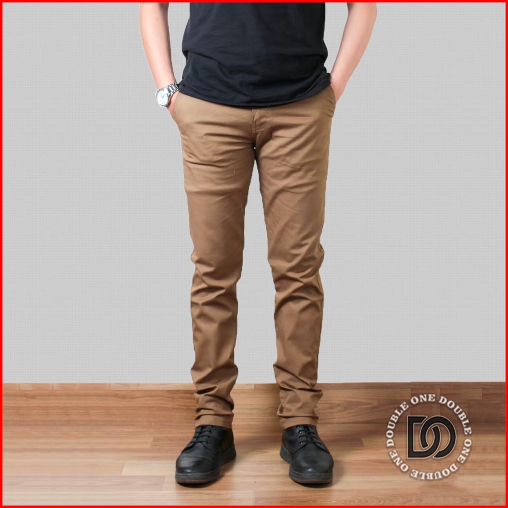 Double One - Celana Chino Panjang Slimfit Hitam Celana Chino Stretch Celana Panjang Pria Celana Chino Premium