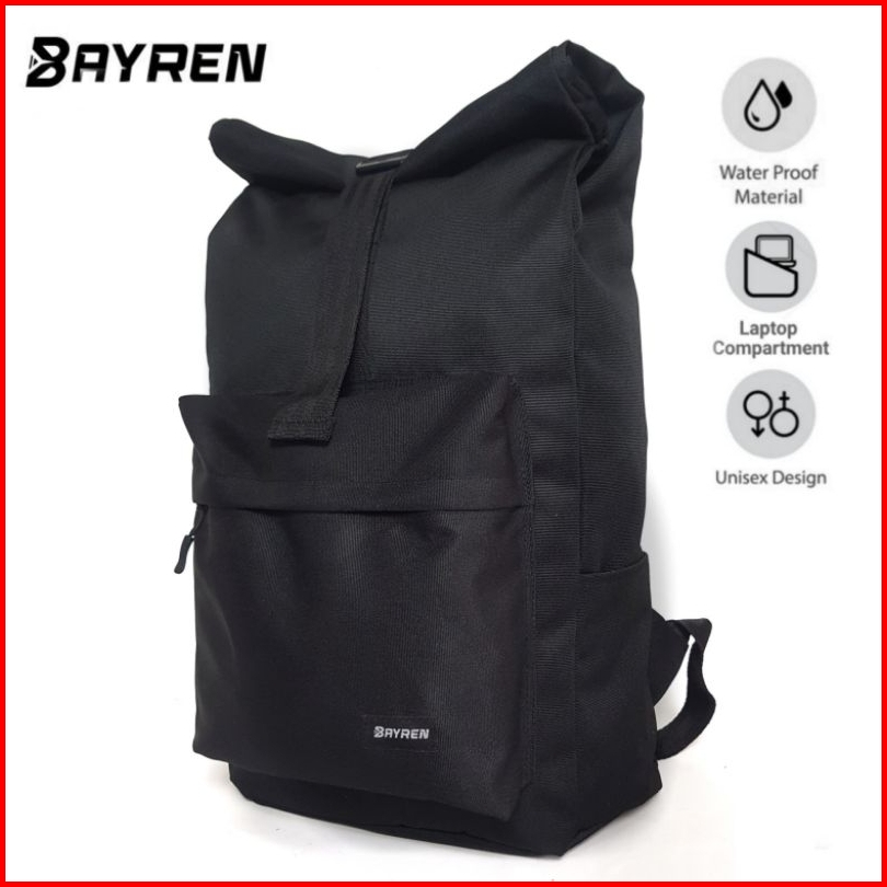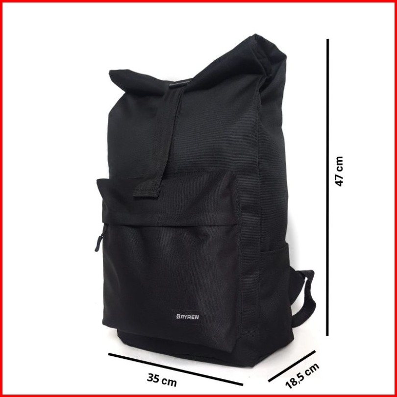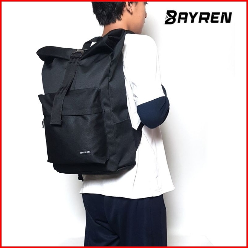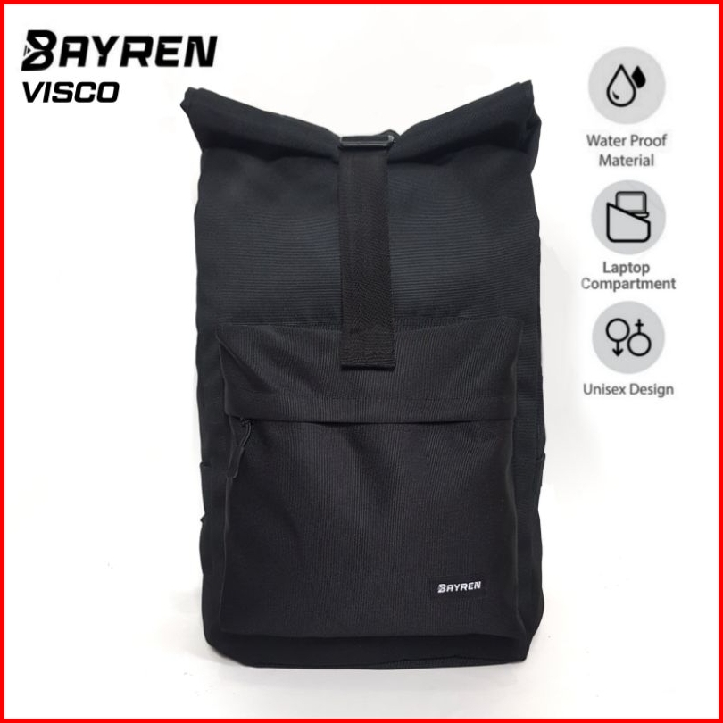 Tas Ransel Bayren Visco Backpack Distro Laptop Rolltop - Tas Sekolah Kuliah - Tas Punggung Pria Wanita - Black Backpack