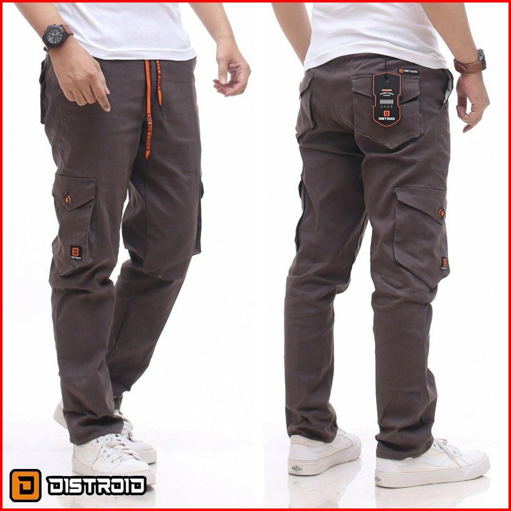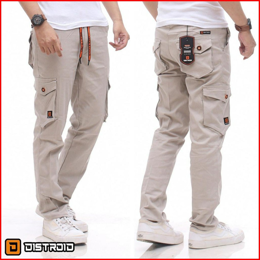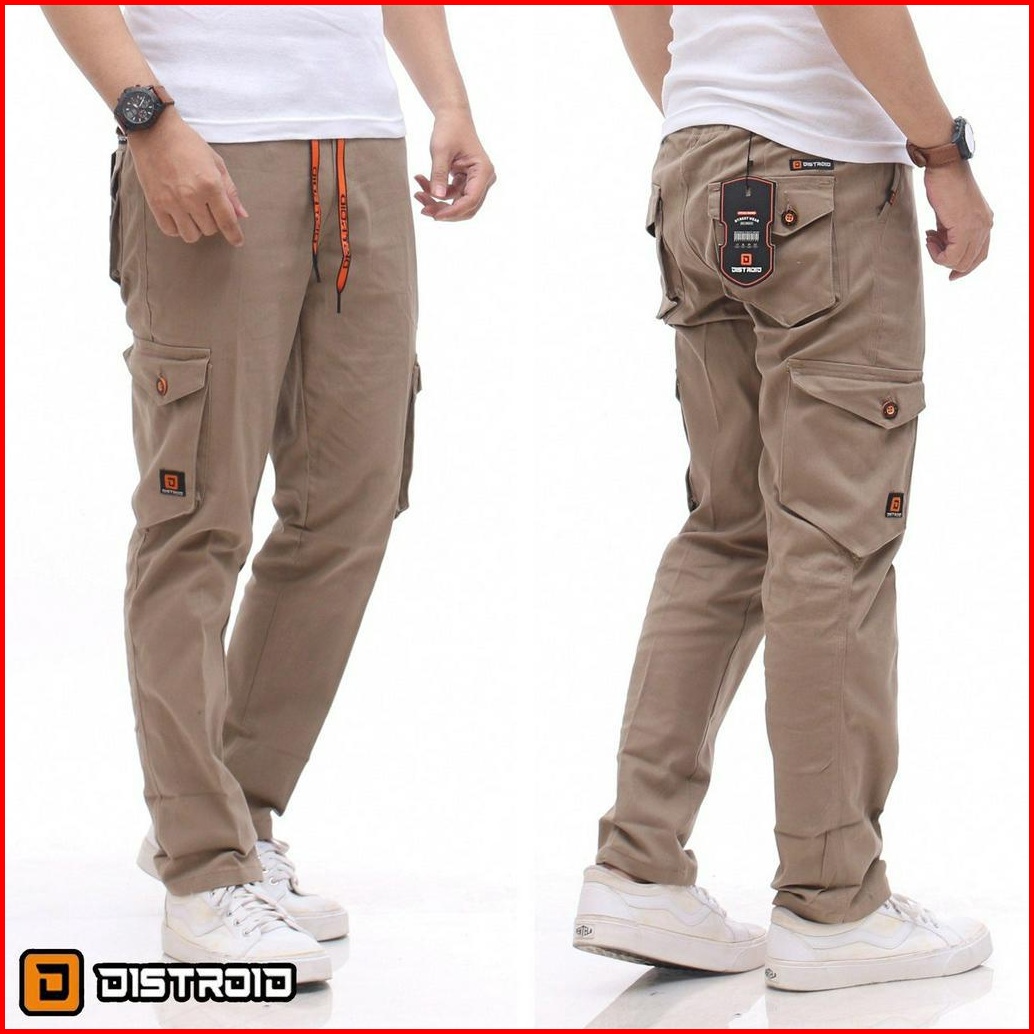 Distroid Celana Rib Cargo Panjang Pria Slim Fit Chinos Katun Melar Cowok Dewasa Pinggang Karet