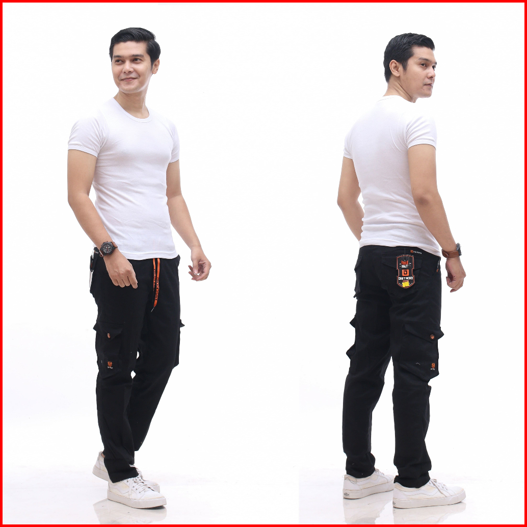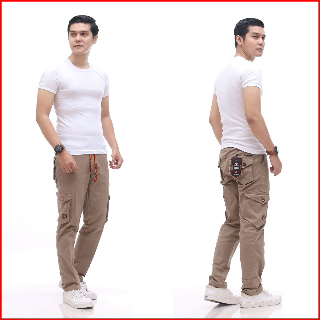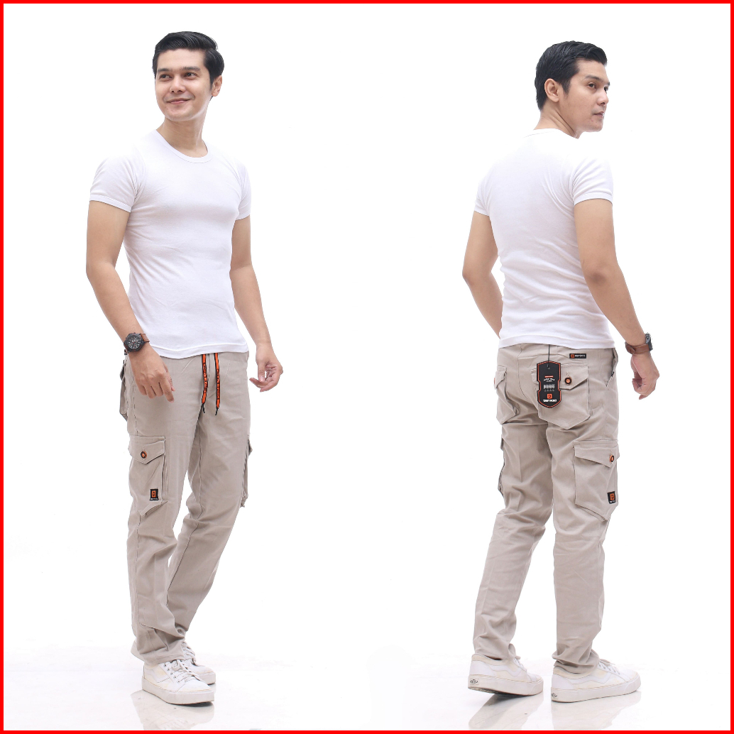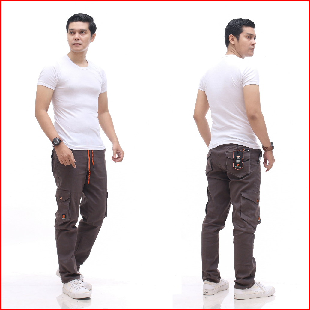 Distroid Celana Rib Cargo Panjang Pria Slim Fit Chinos Katun Melar Cowok Dewasa Pinggang Karet