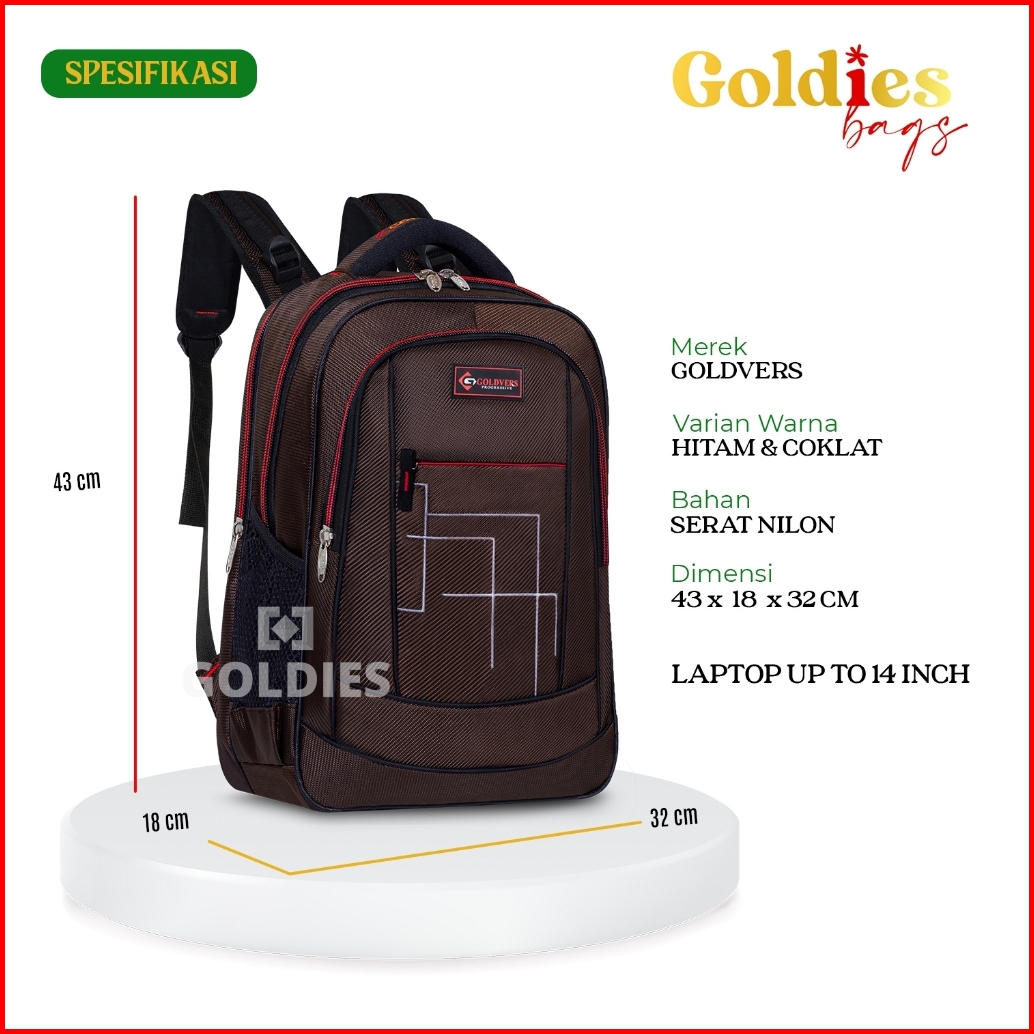 Tas Ransel Laptop Kuliah Backpack Remaja Dewasa Ransel Sekolah Goldvers Pria - Goldiesbags