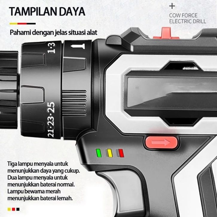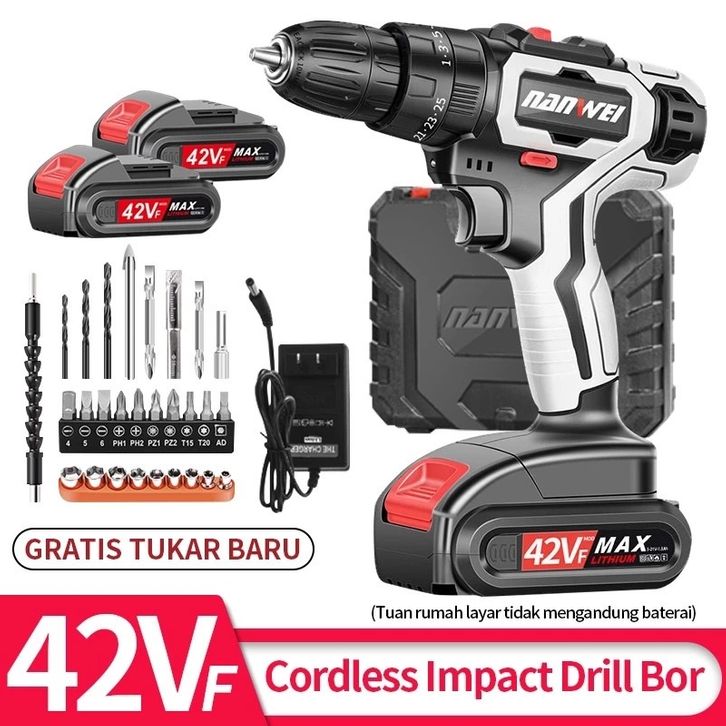 Mesin Bor Cordless/Bor Baterai/ Bor Listrik/Beton Besi Kayu Full 42VF Set Pilihan Bor Tanpa Kabel