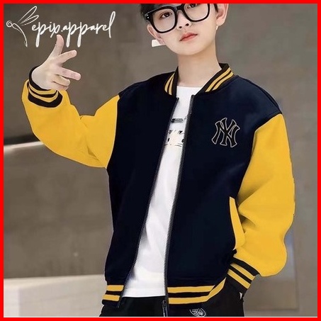 Jaket Baseball Anak Perempuan Laki Laki Model Ny Usia 1 3 5 7 9 11 13 15 16 Tahun Flecee Premium Hitam Kuning Kuning Hit