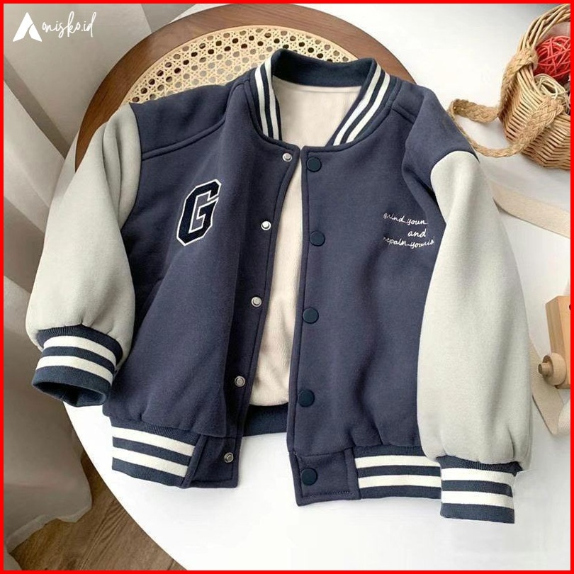 Jaket Anak Cewek Cowok Model Varsity Bomber Baseball Fleece Premium Umur 1 2 3 4 5 6 7 8 9 10 11 12 Tahun Sablon Inisial