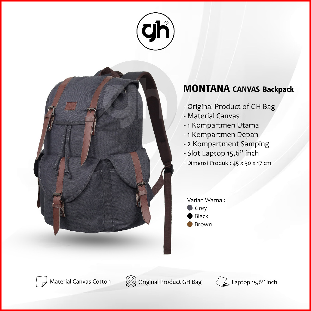 Gh-bag Tas Ransel Kanvas - Tas Ransel Pria Wanita - C7 Montana Canvas Backpack Daypack 15 6 Inch