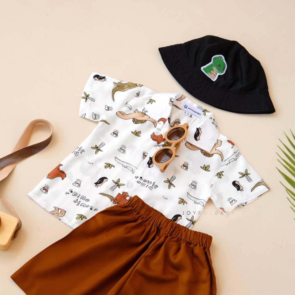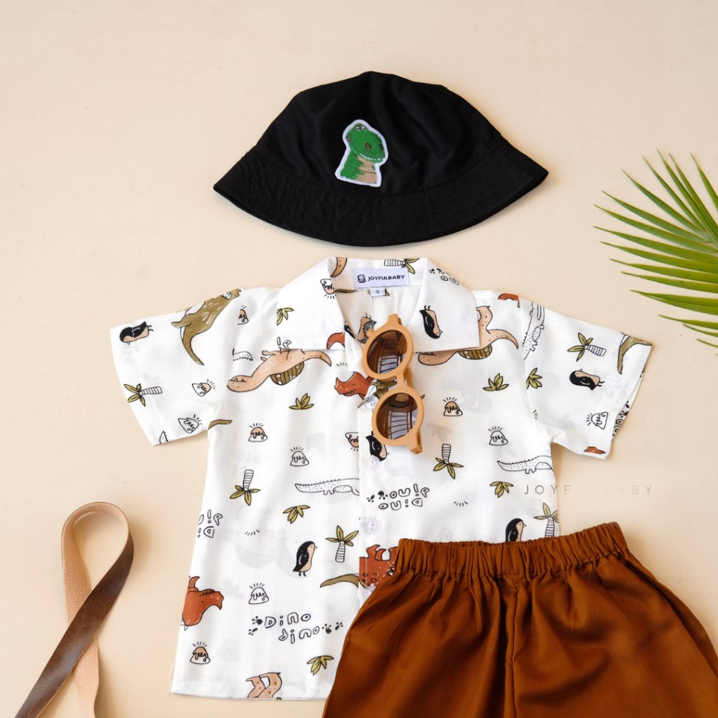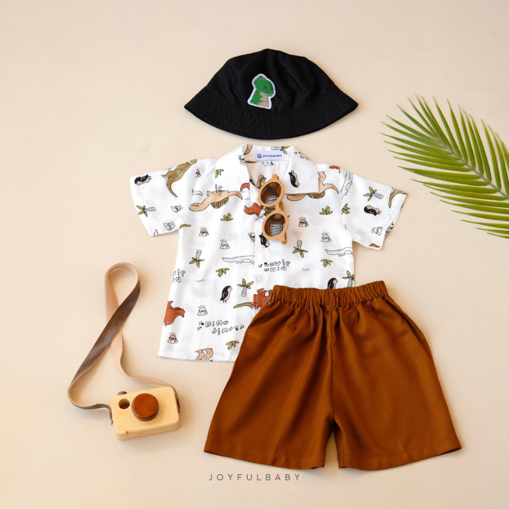 JOYFULBABY Setelan Anak Setelan Rayon Anak Celana Polos Unisex - DINO