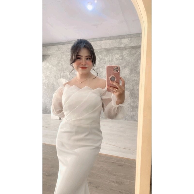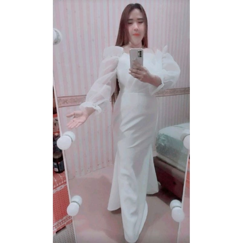 701718 Longdress Beauty Sabrina Party Gown Scuba Titanium Organza Prewedding Bridesmaid