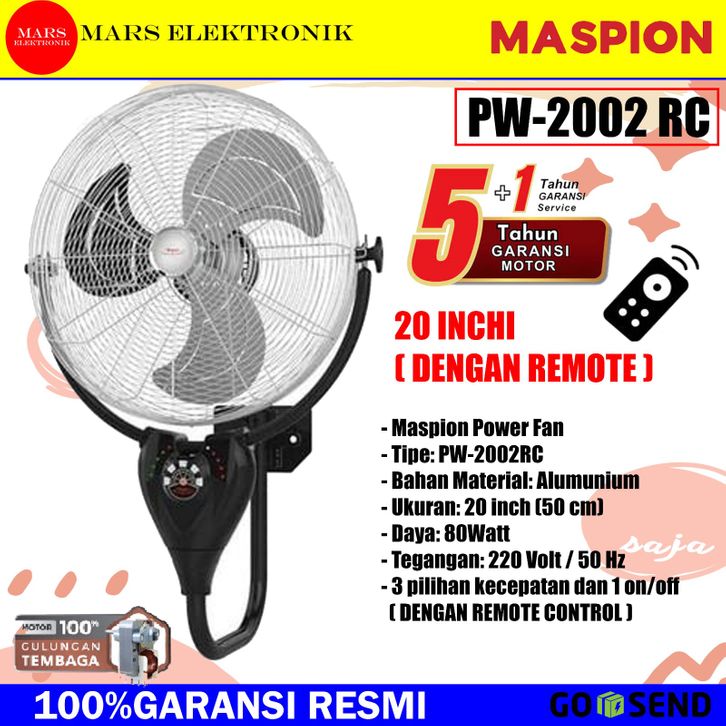 KIPAS ANGIN MASPION PW-2002 RC / 20 INCHI / PW 2002 RC / REMOTE CONTROL / WALL FAN DINDING
