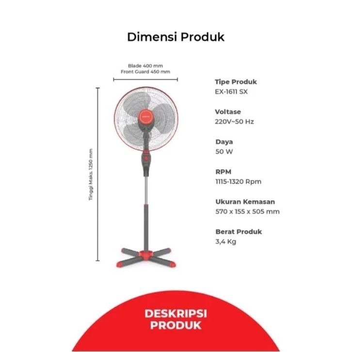 KIPAS ANGIN MASPION EX-1611SX / 16 INCHI / EX 1611 SX / READY