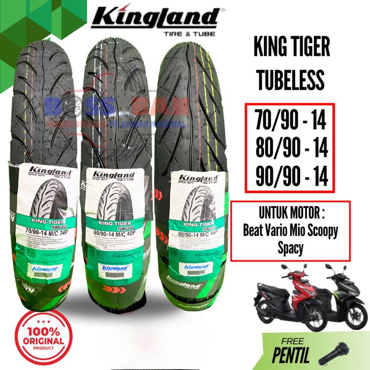 Ban Kingland Tiger Ukuran 70/90 80/90 90/90 Ring 14 Tubeless Original Untuk Motor Matic Beat Vario Mio