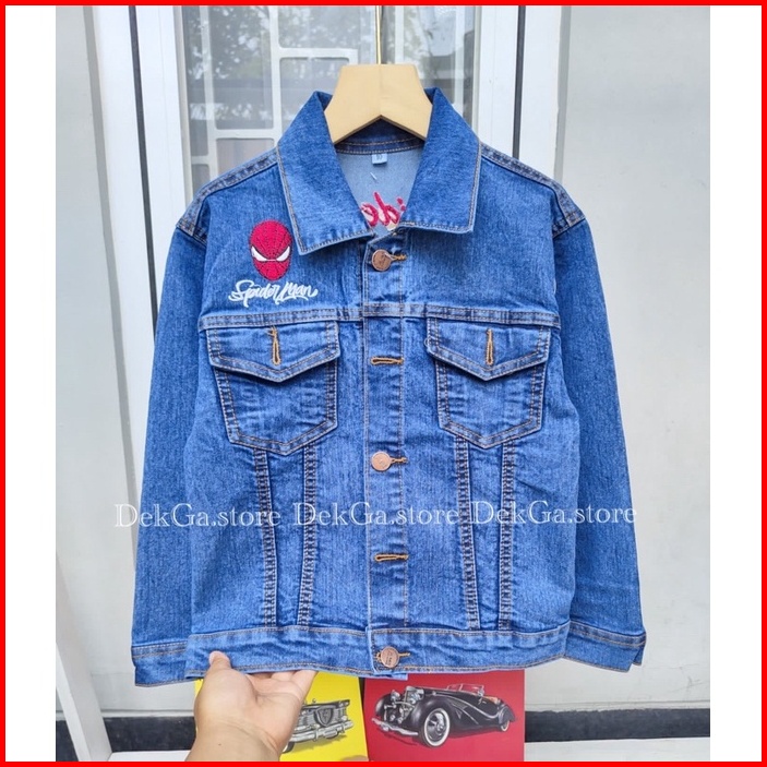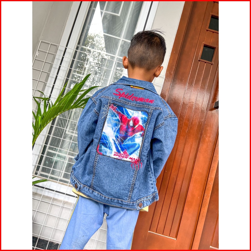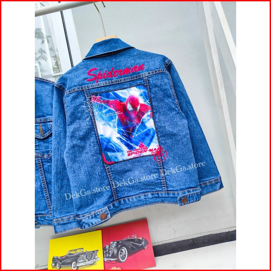 Jaket Jeans Anak Laki-laki Motif Spiderman Mantel Jeans Denim Anak