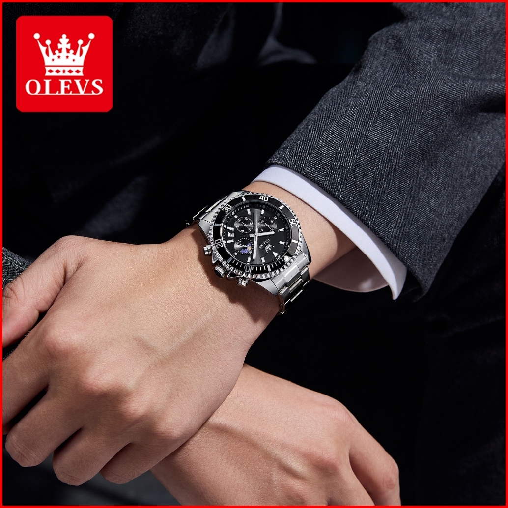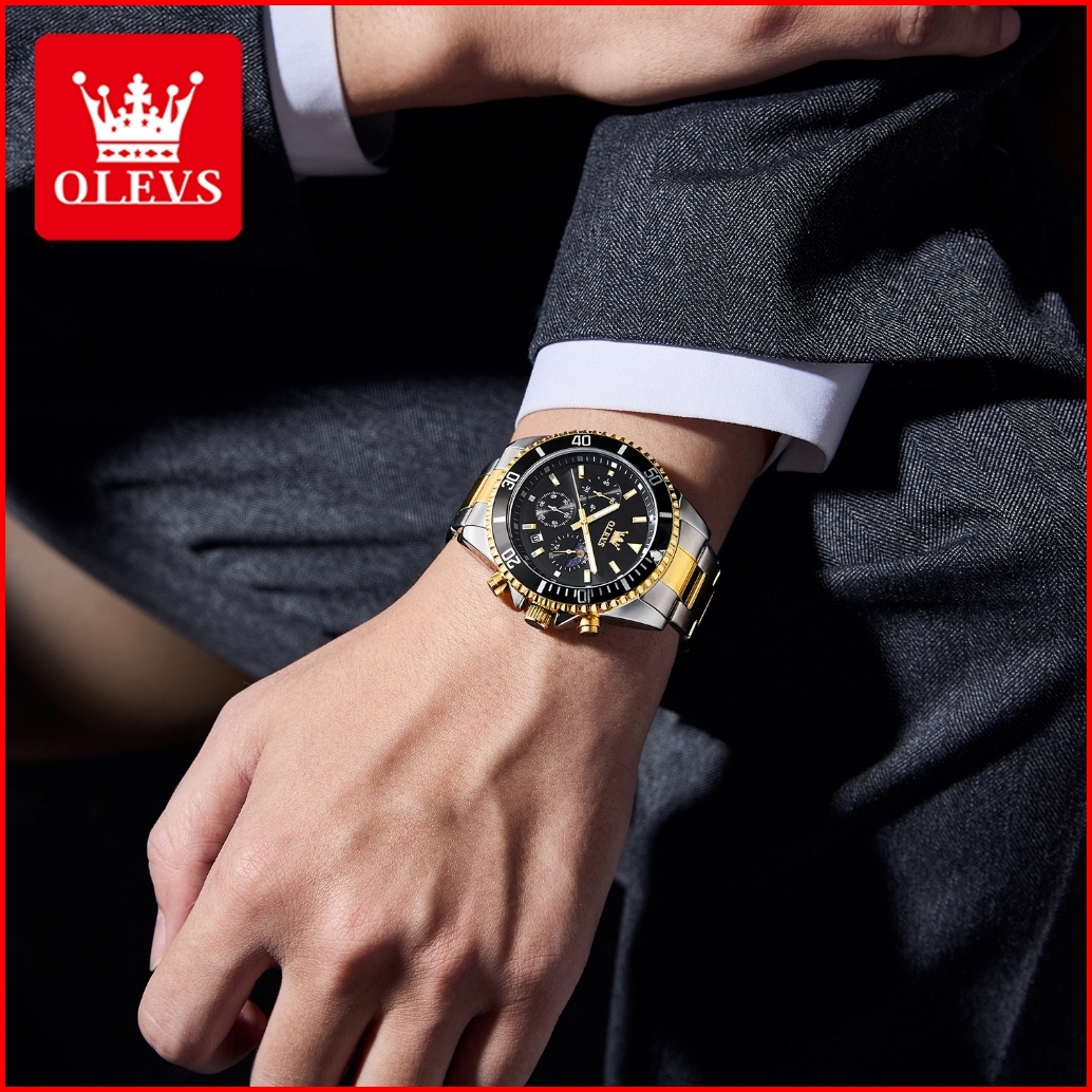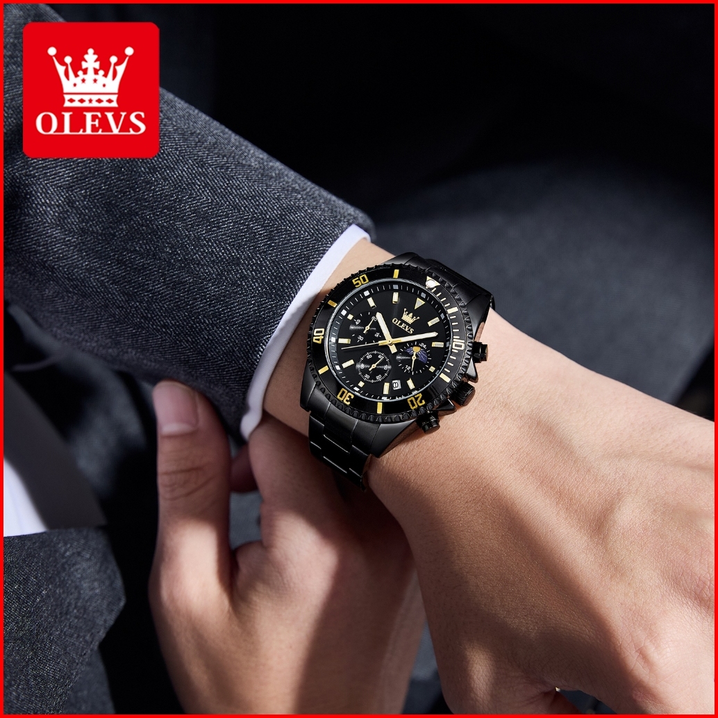 Olevs Jam Tangan Pria Anti Air Original Tahan Keren Luxury Led Analog Stainless Steel Chronograph Watch Men Hitam Model