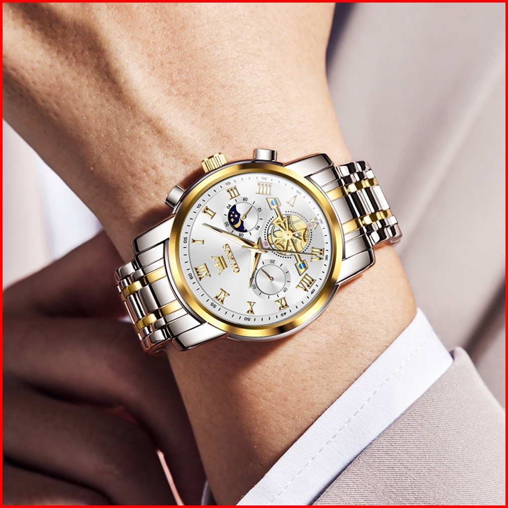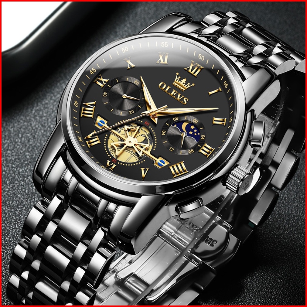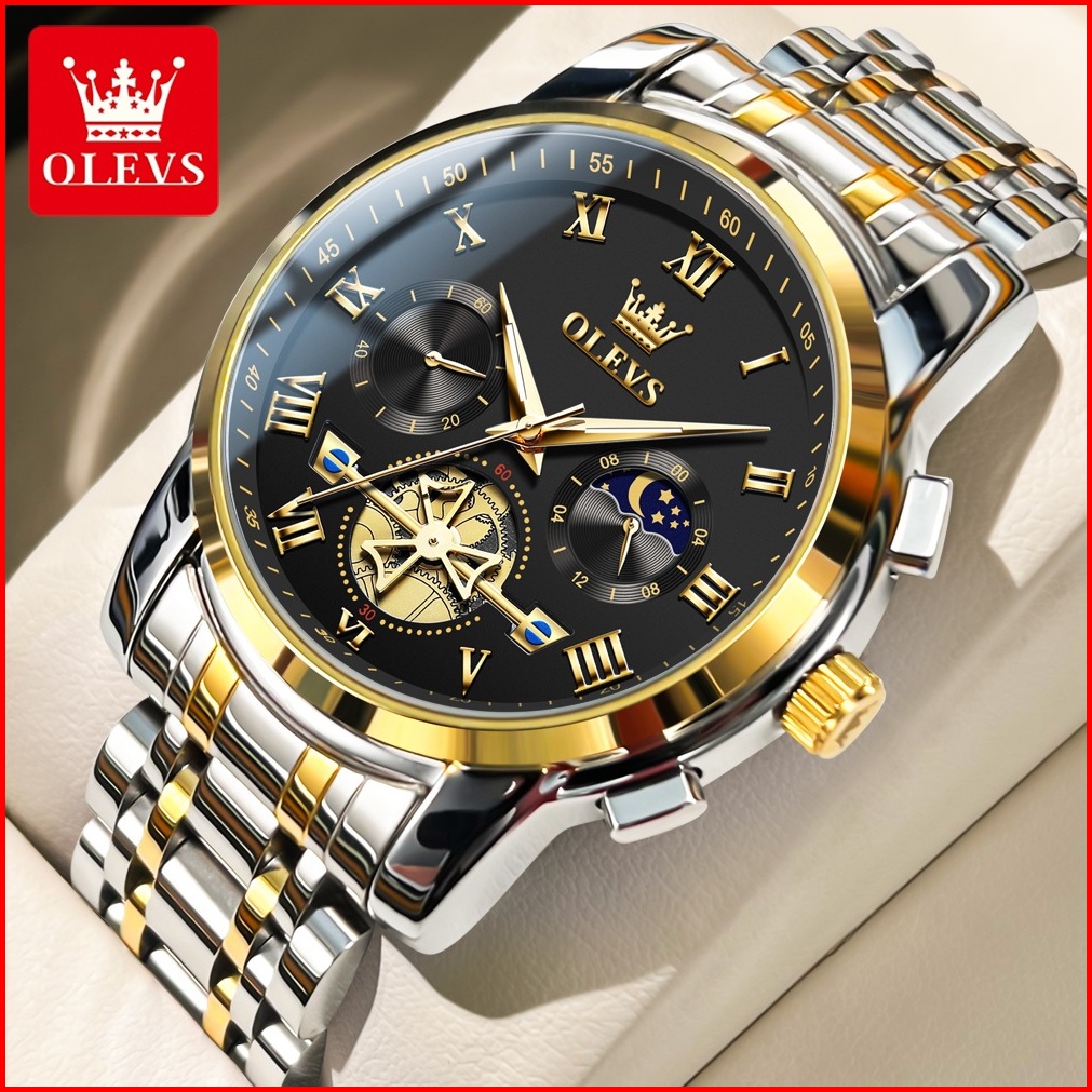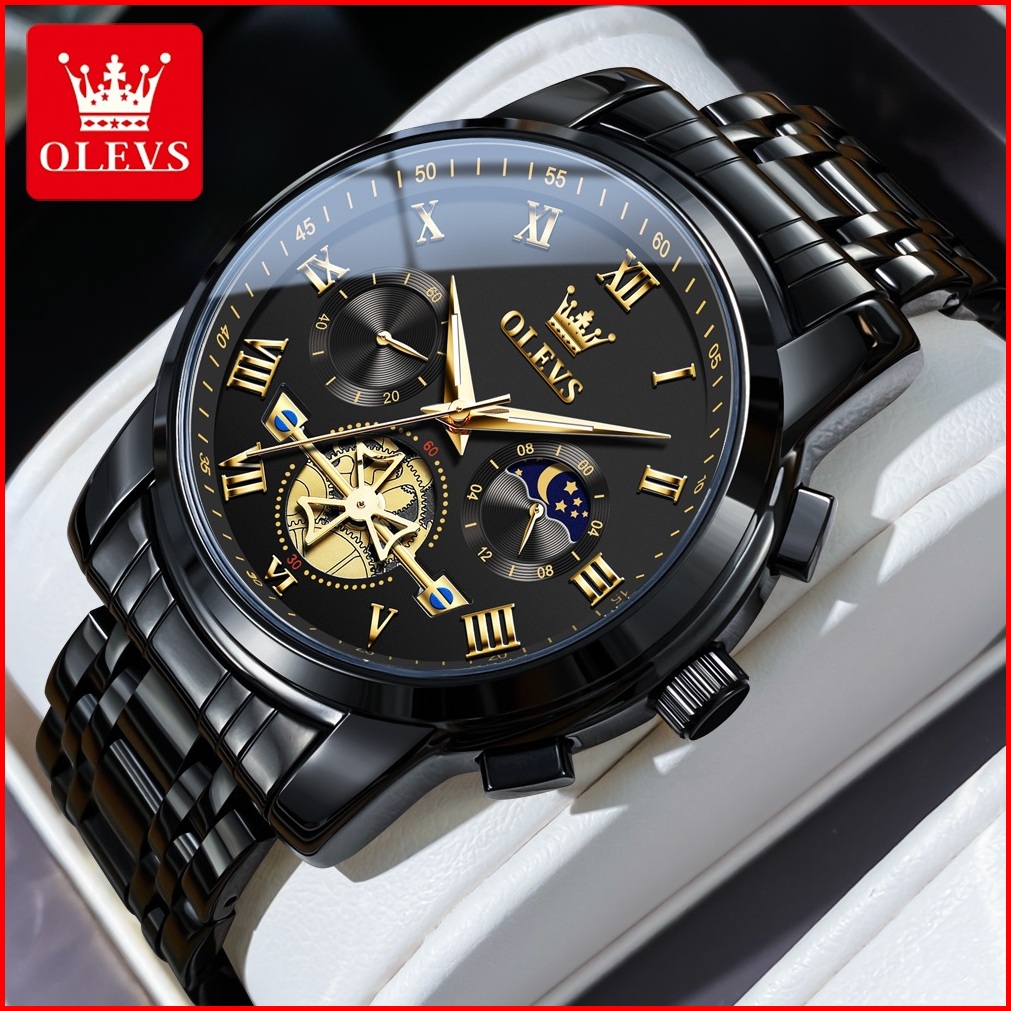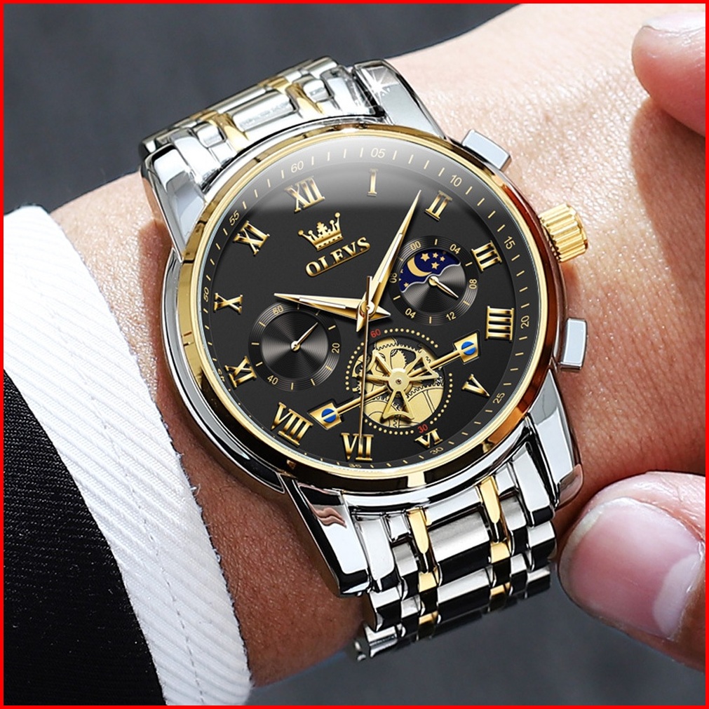 Olevs Jam Tangan Pria Anti Air Original Cowok Terbaru Tahan Luxury Led Sport Analog Chronograph Stainless Steel Watch Me