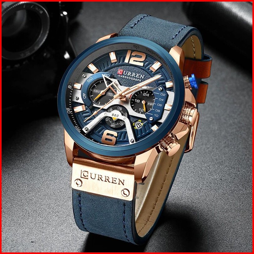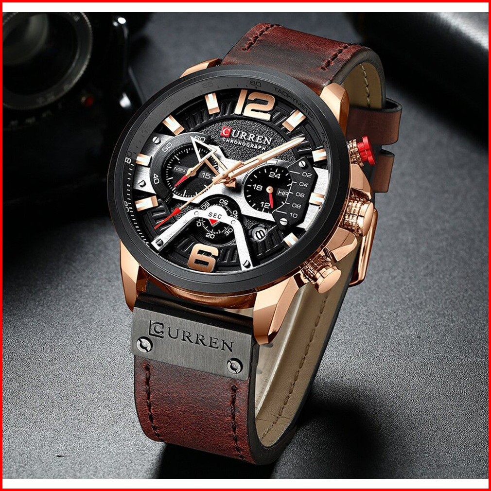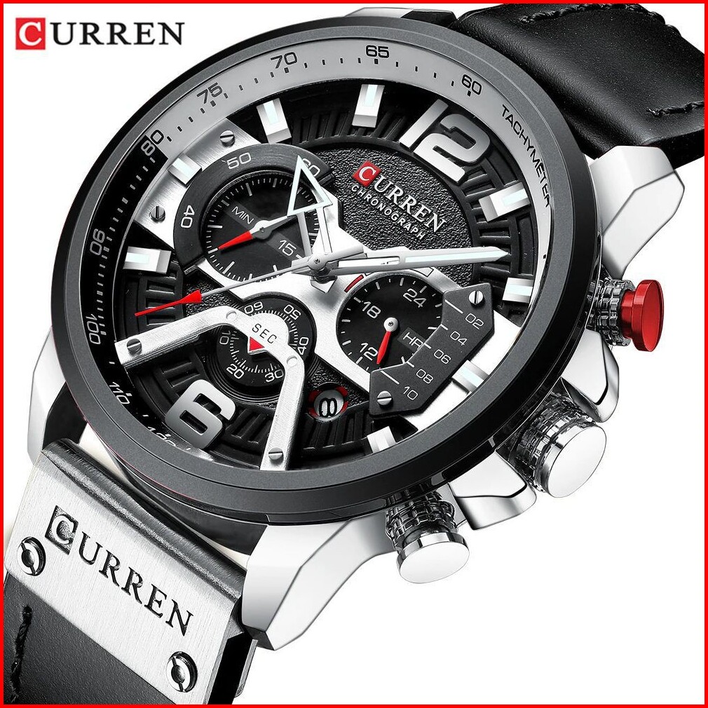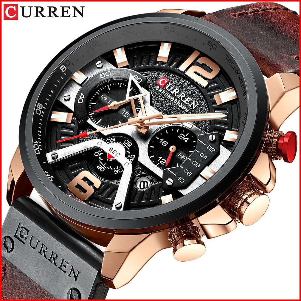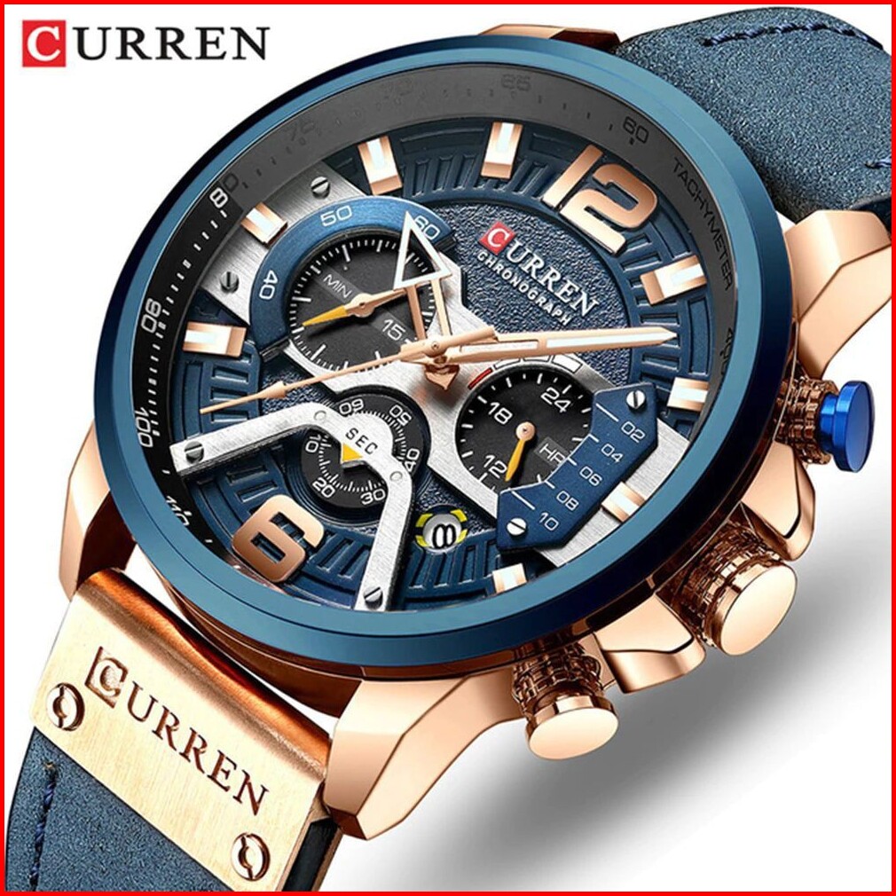 Curren 8329 Jam Tangan Pria Analog Tali Kulit Chronograph Aktif Currenos