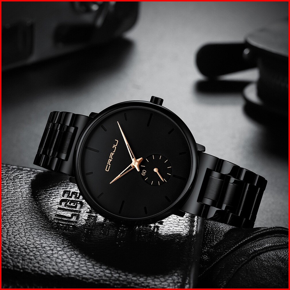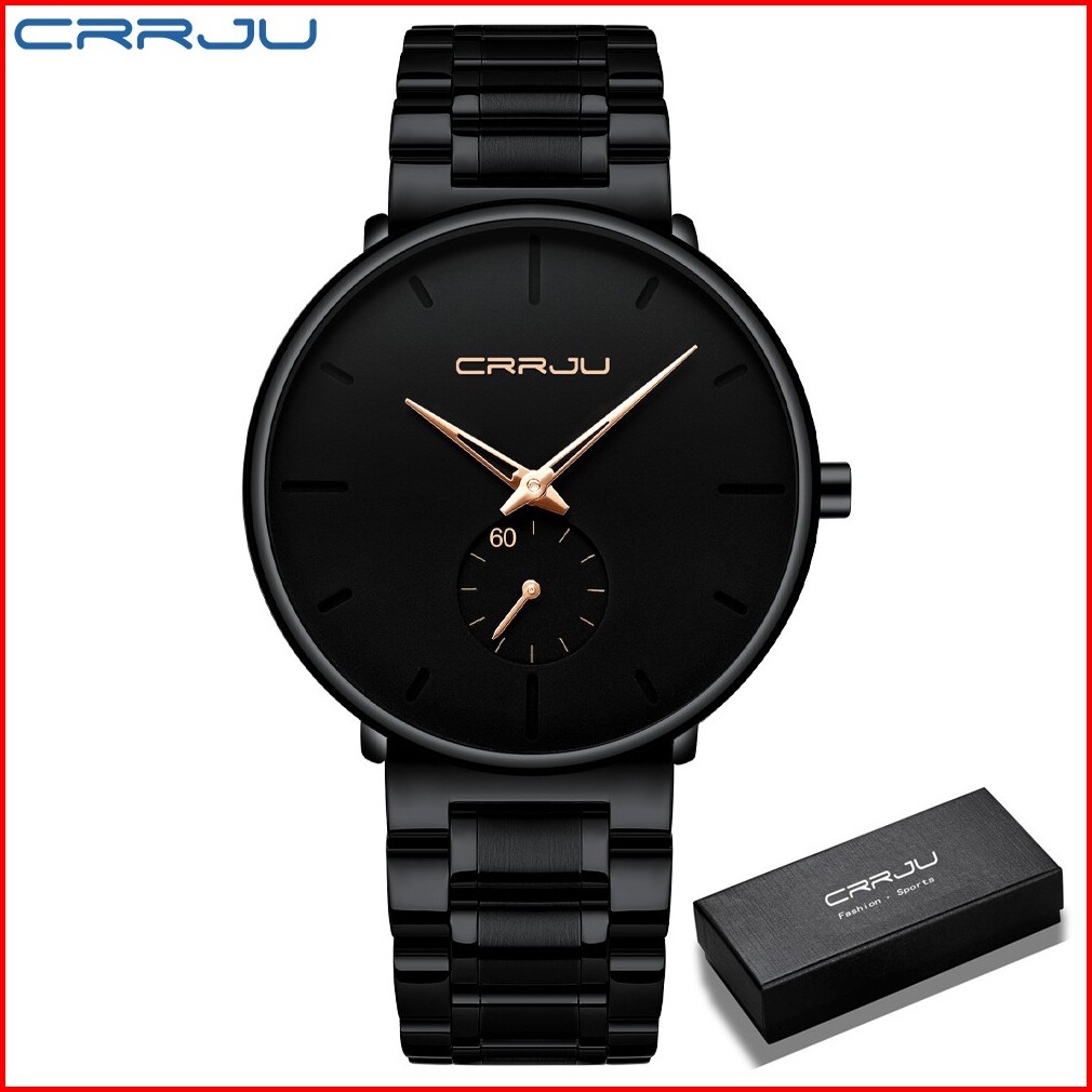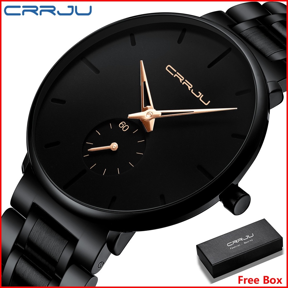 Jam Tangan Pria Sangat Tipis Crrju 100 Original Cowok Quartz Men Watch Arloji Tahan Air