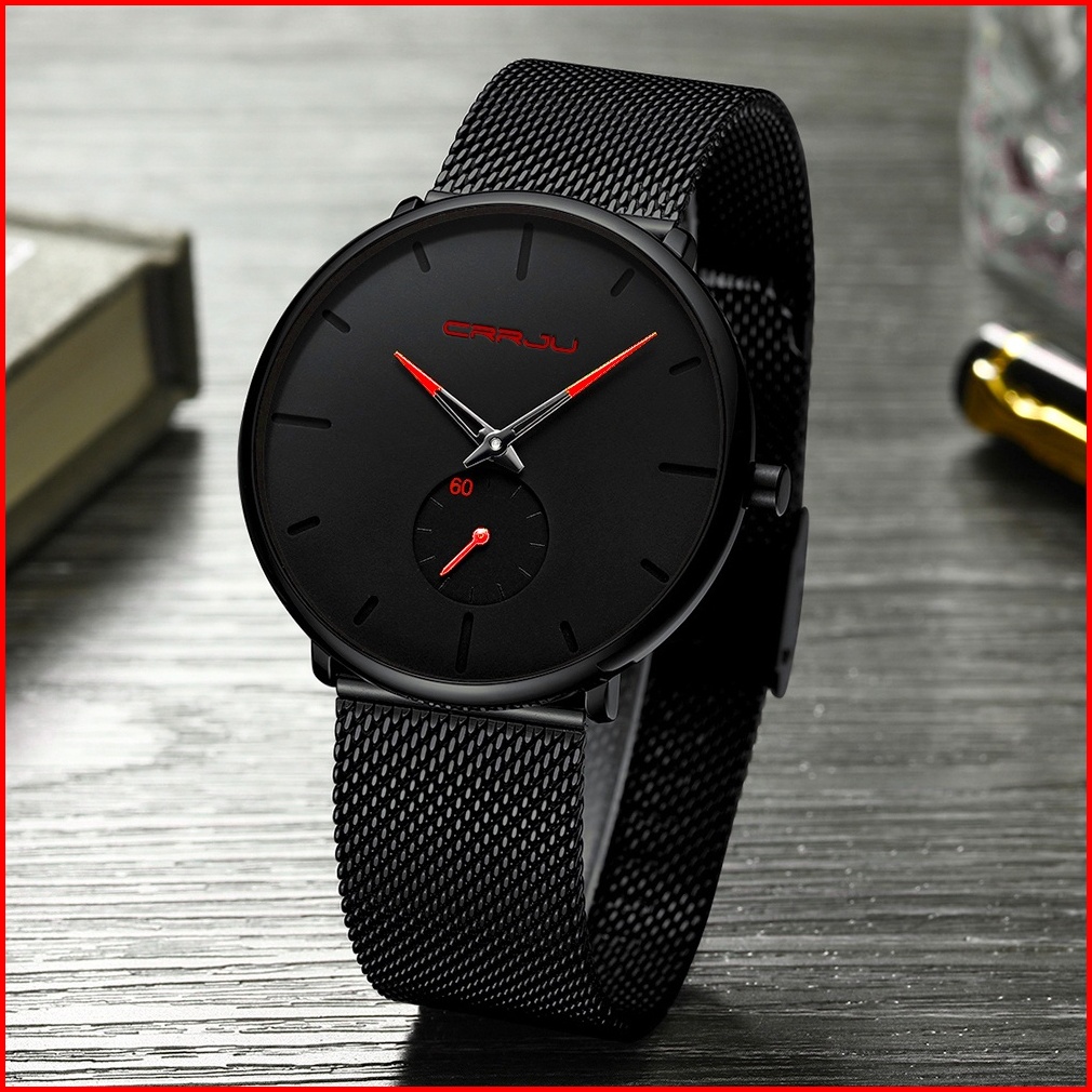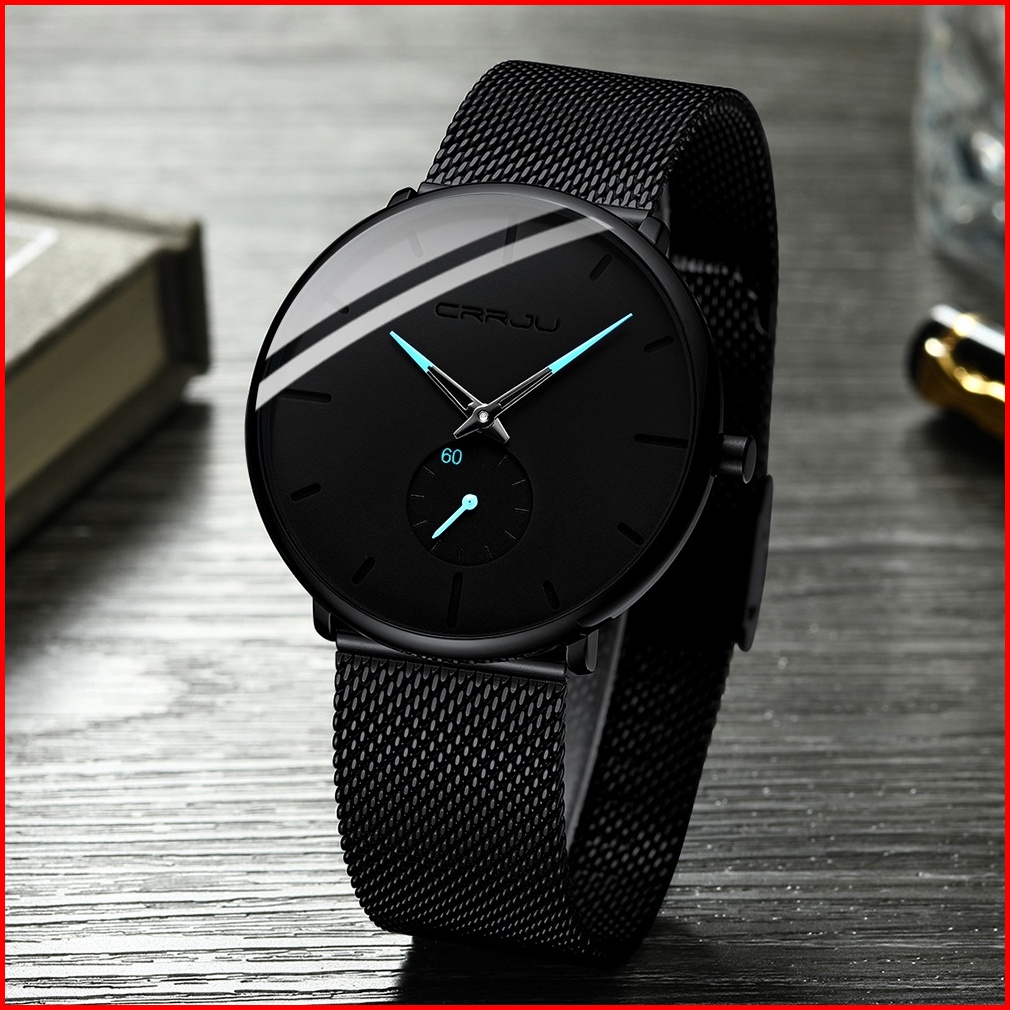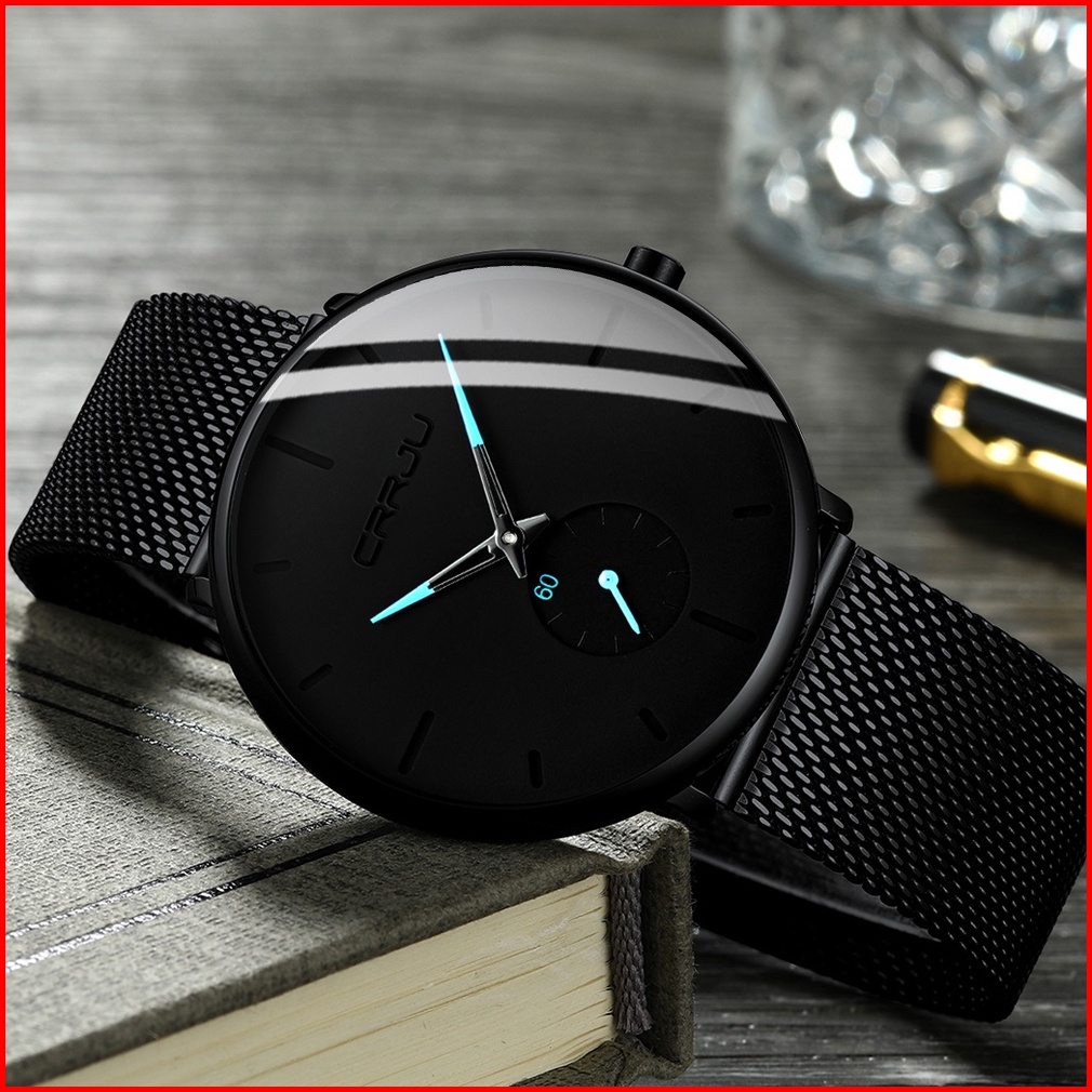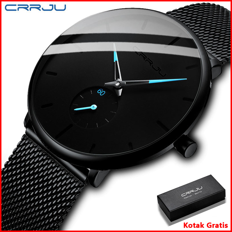 Jam Tangan Pria Crrju Keren Elegant Simple Stainless Waterproof Steel Mesh Belt Watch Jam Tangan Kuarsa 2150