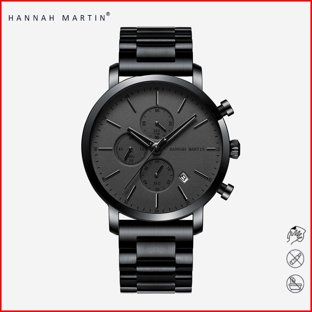 Hannah Martin Jam Tangan Pria 100 Original Kronograf Tahan Air Cowok Quartz Analog Laki 109g
