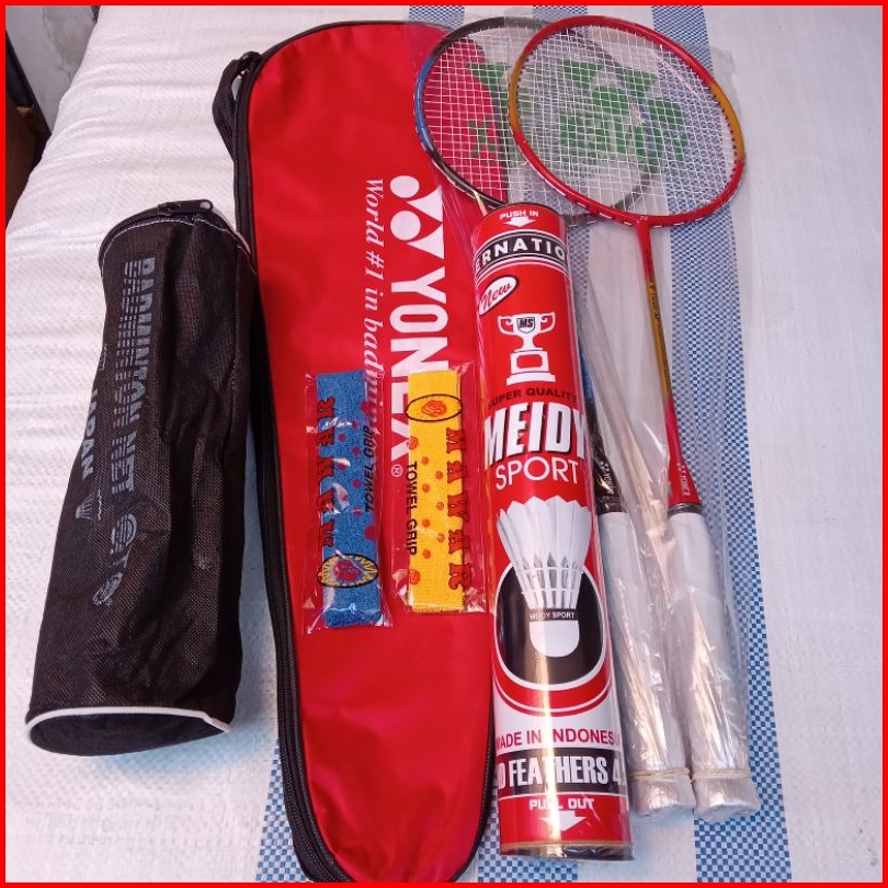 Raket Badminton Komplit Paket Lengkap Raket Tas Kok Net Grip