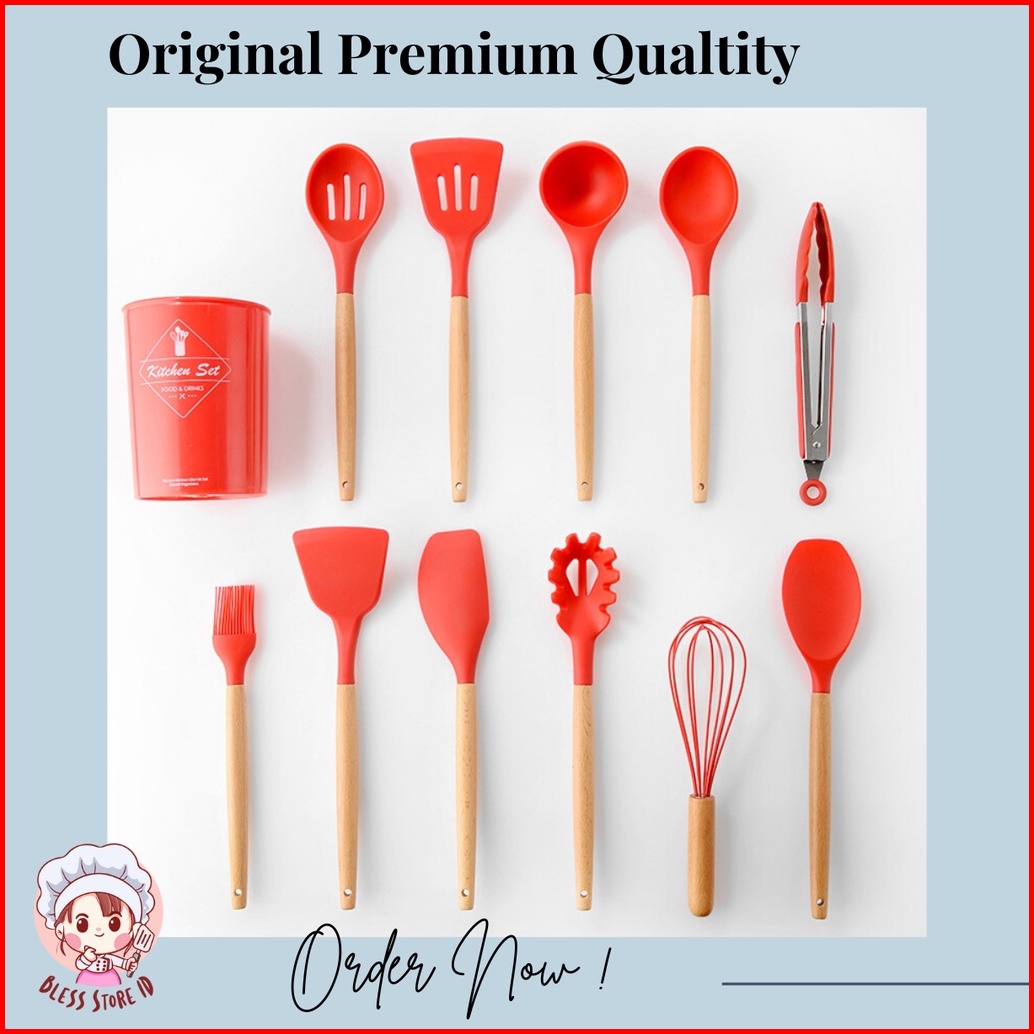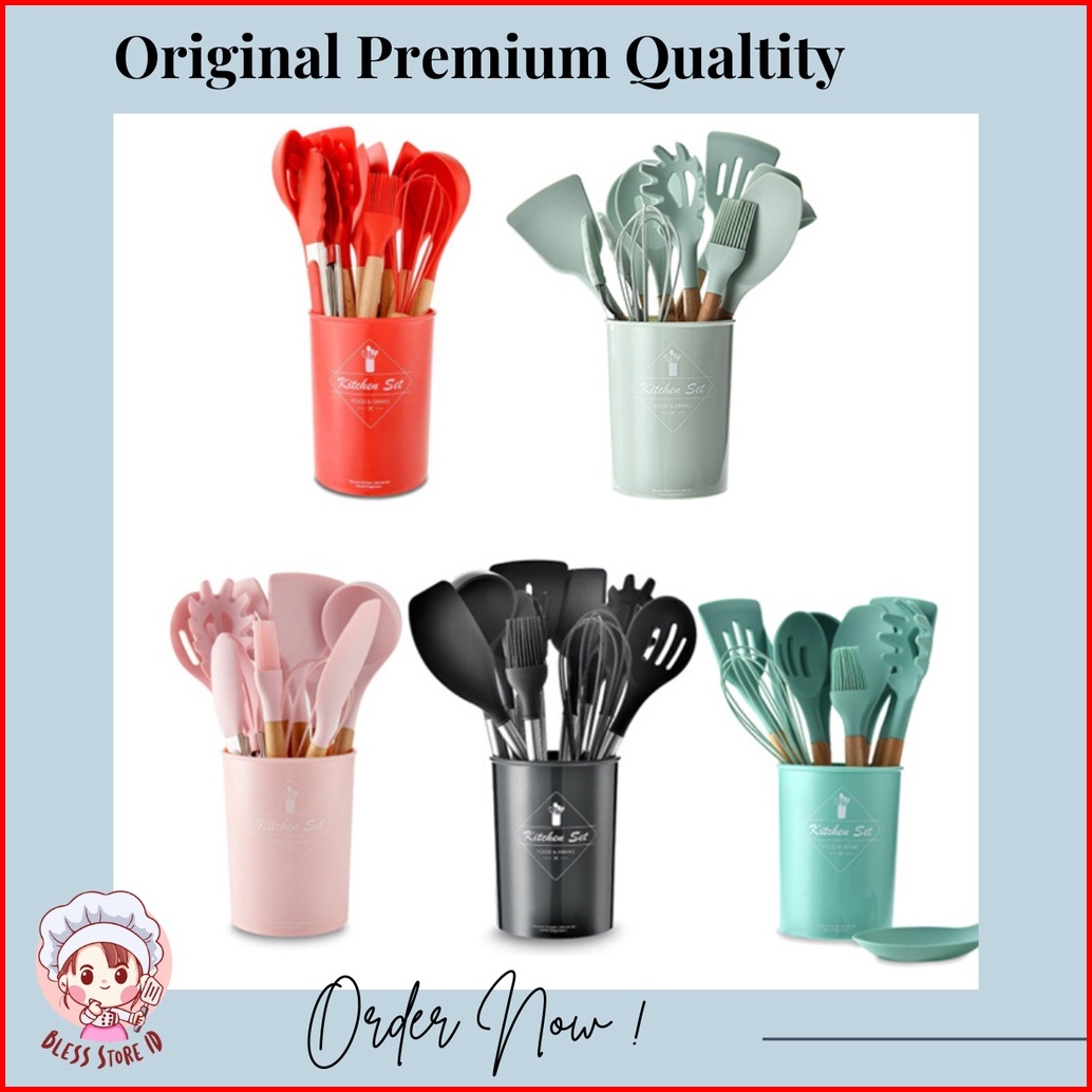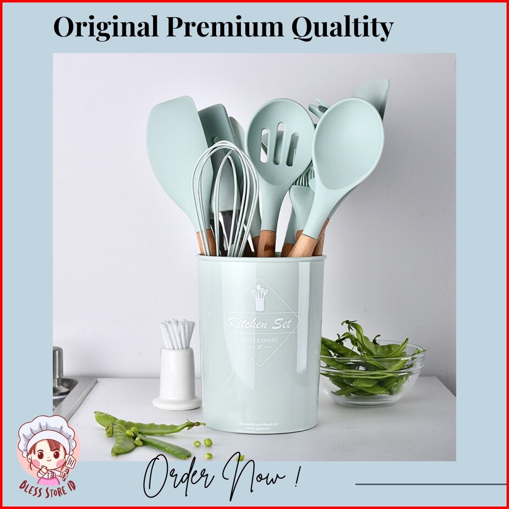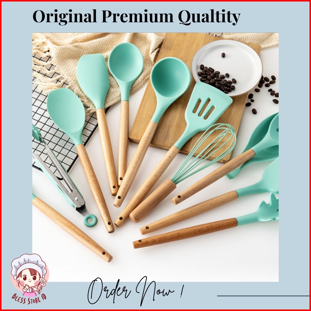 Silicone Utensil Set 12 Pcs Peralatan Masak Spatula Silikon Set Sutil Kitchen Set Mint