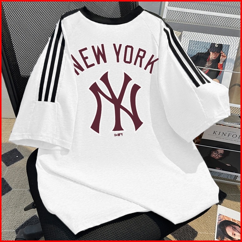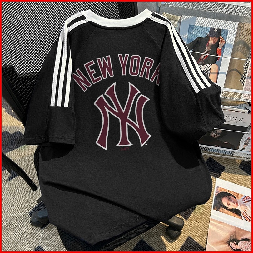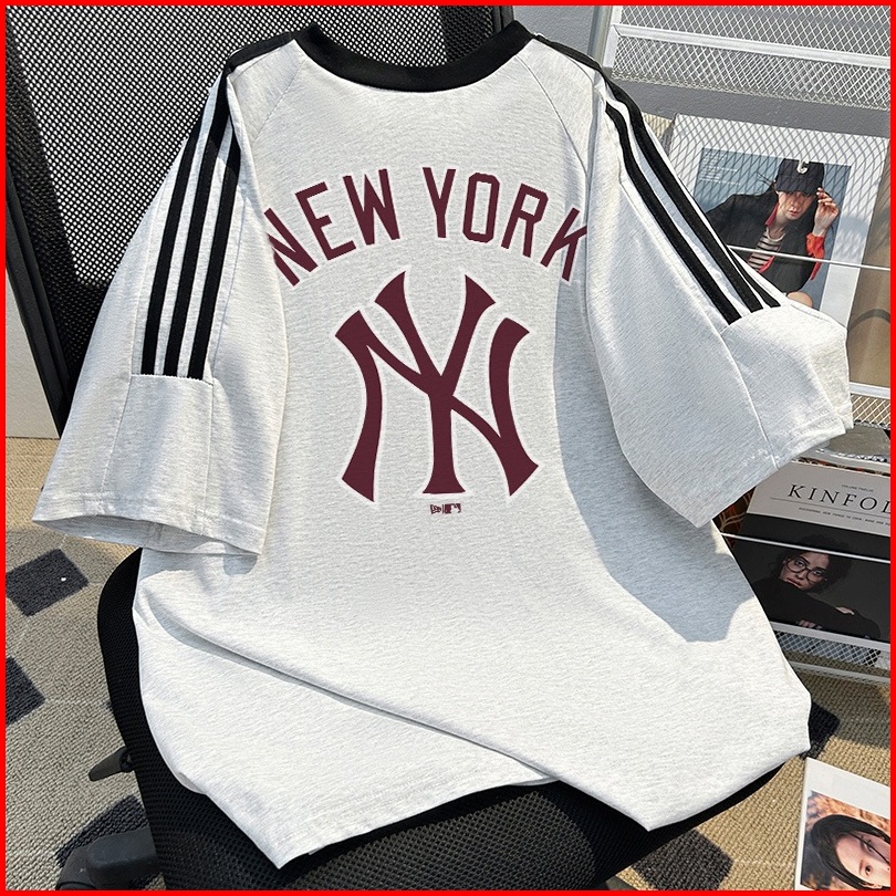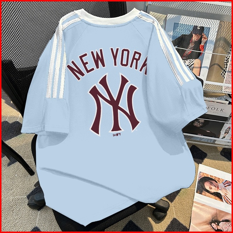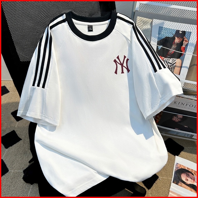 Po Floret Kaos Wanita Atasan Lengan Newyork Ny Baju Oversize Bergaris Bahu Korean Style Kaos Longgar