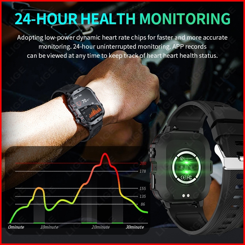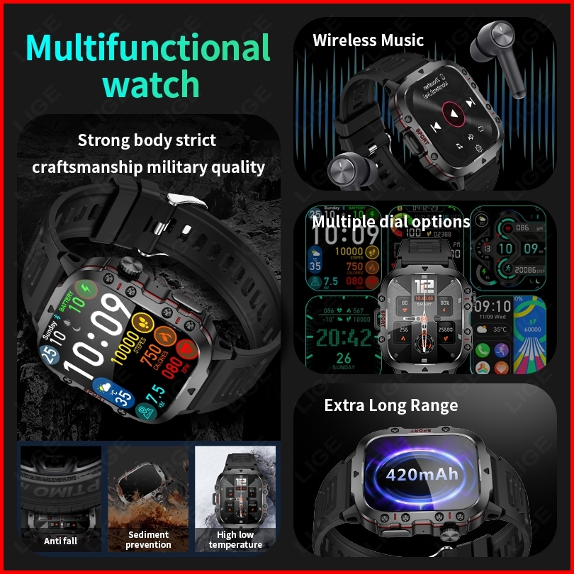 Lige Jam Tangan Pintar Olahraga Tahan Air Panggilan Bluetooth Pria 420mah Pemantauan Kesehatan Ip68 Jam Tangan Pintar Pr