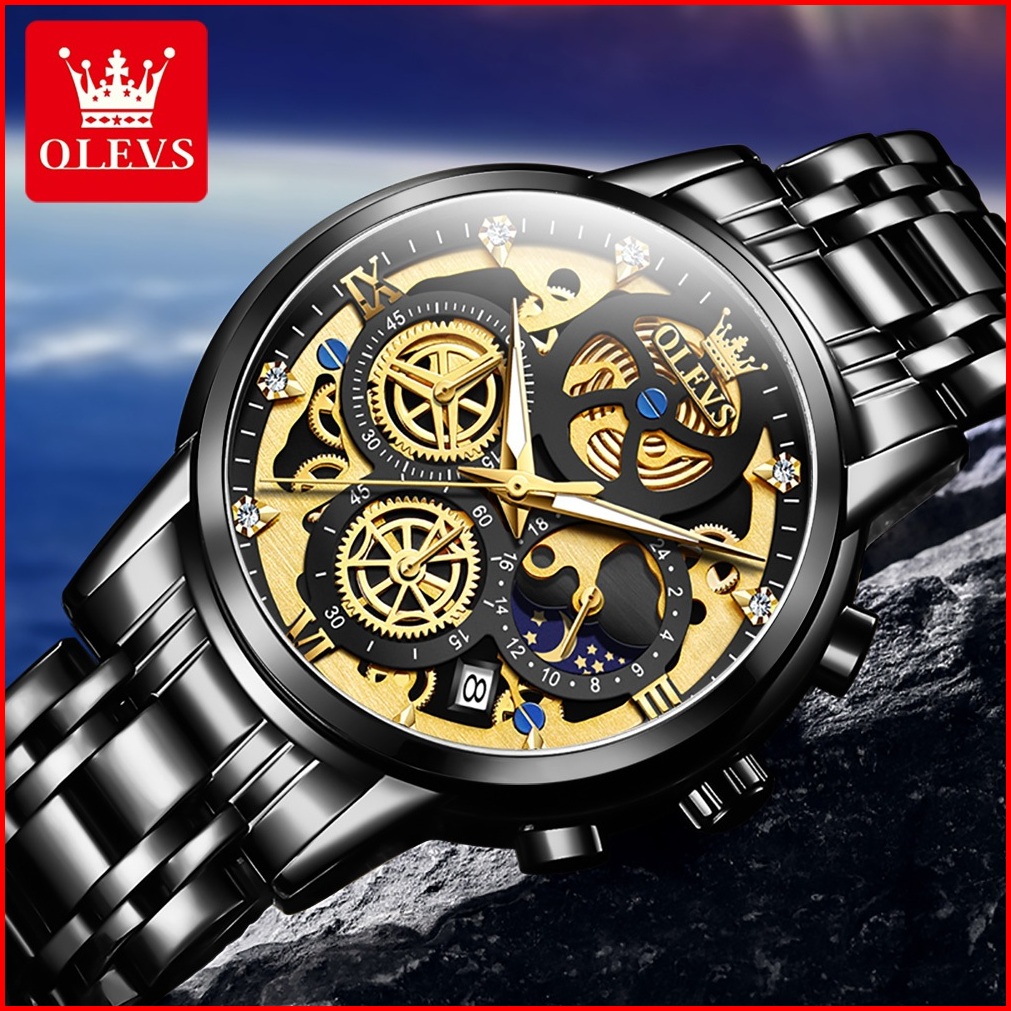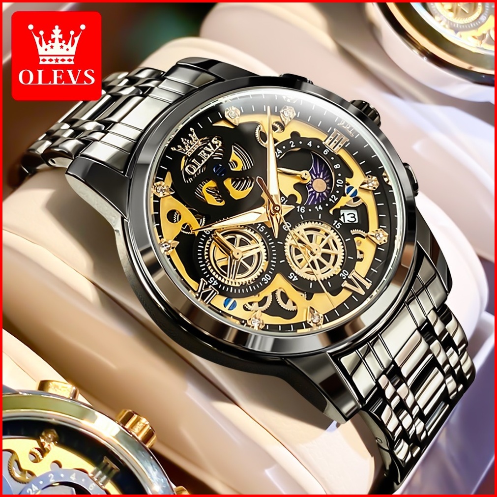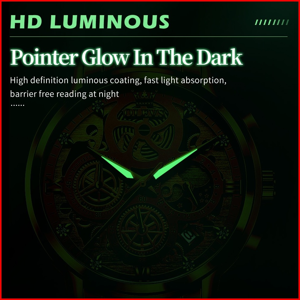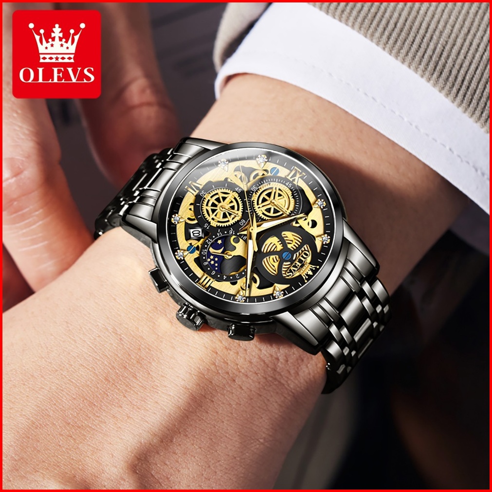 Olevs Jam Tangan Pria Original Anti Air Tahan Keren Led Hitam Stainless Steel Luxury Watch Men Model 9947