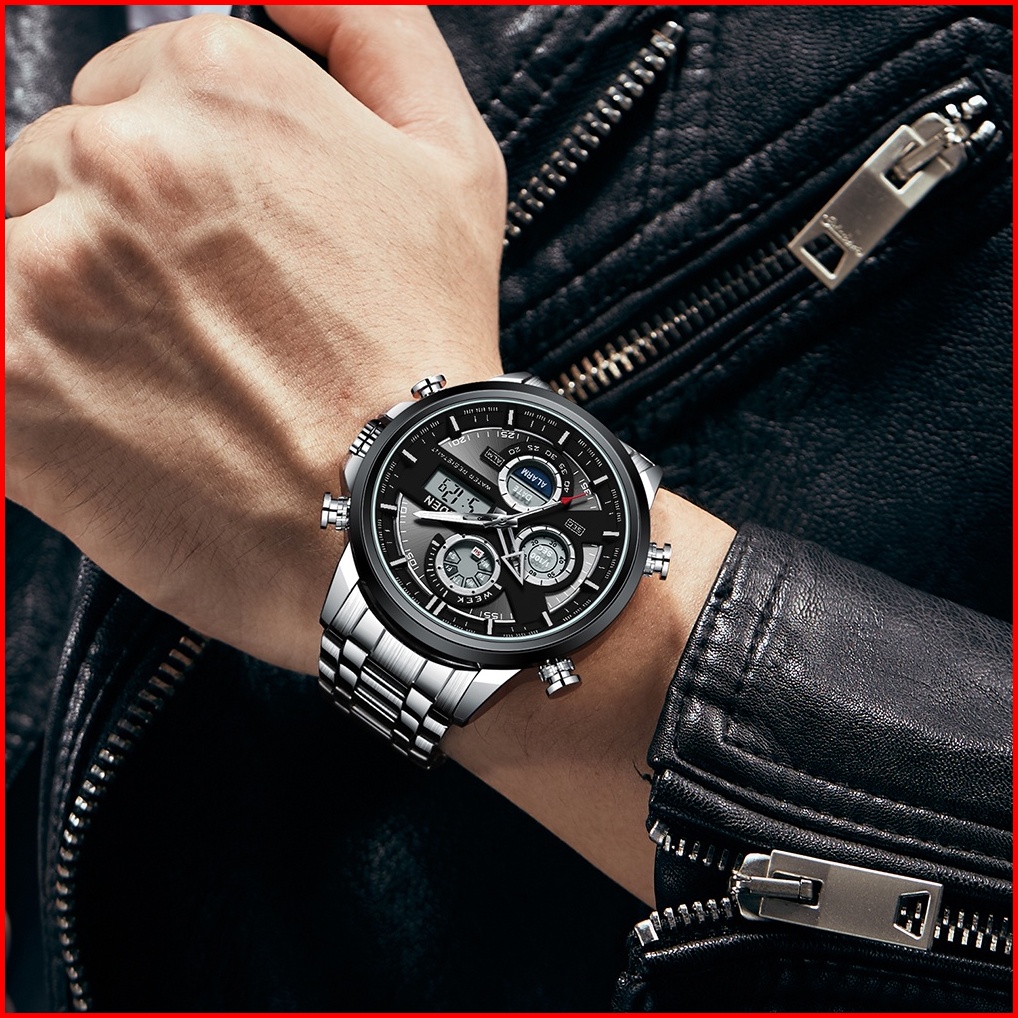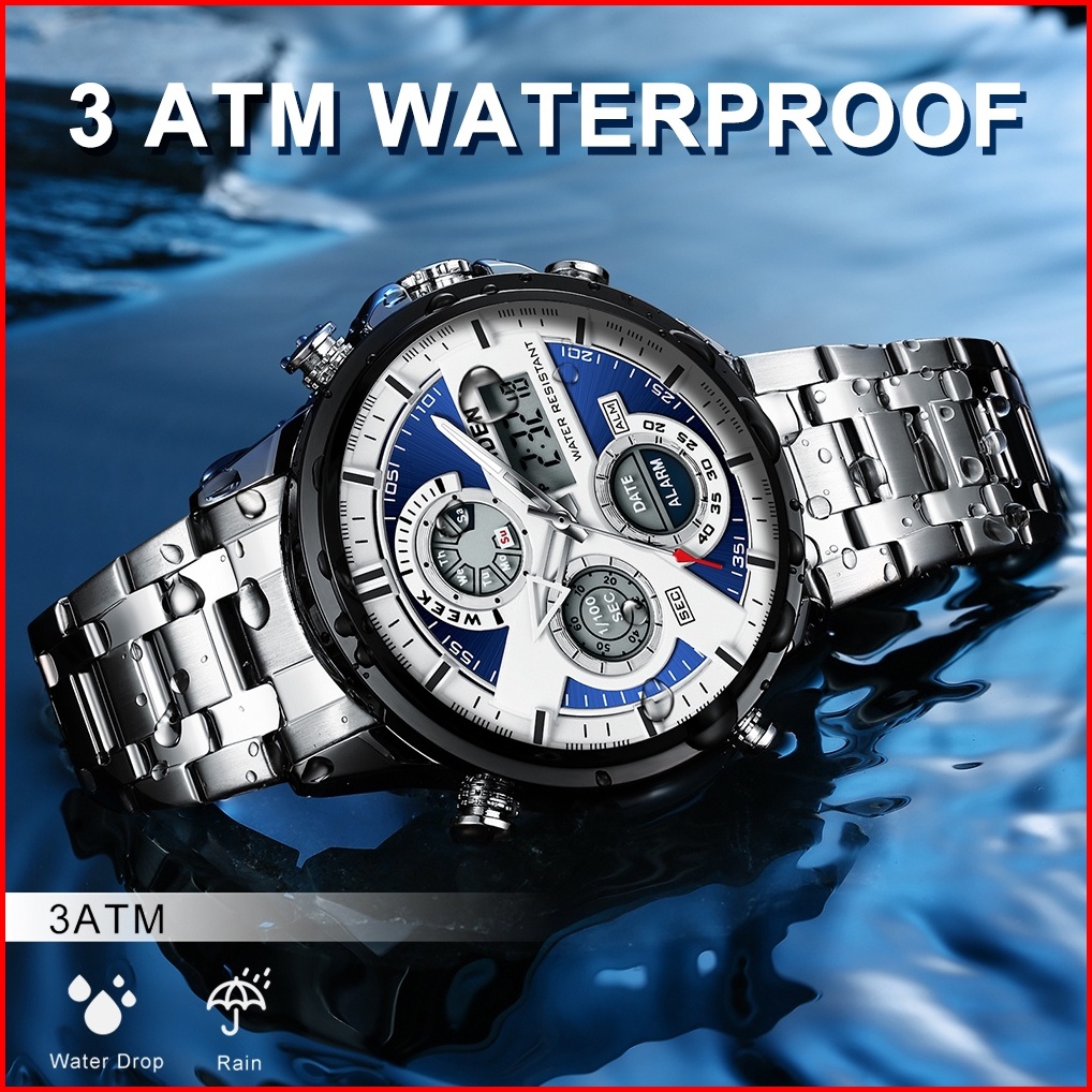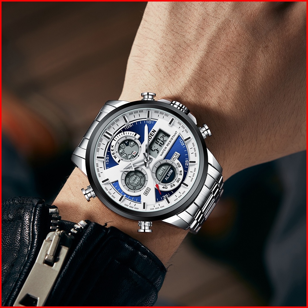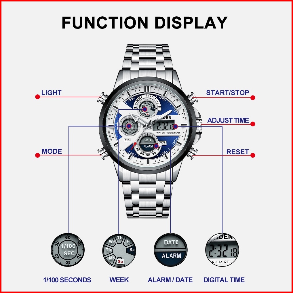 Biden Jam Tangan Pria Anti Air Olahraga Kuarsa Waktu Ganda Tali Stainless Steel Jam Tangan Cowok Original