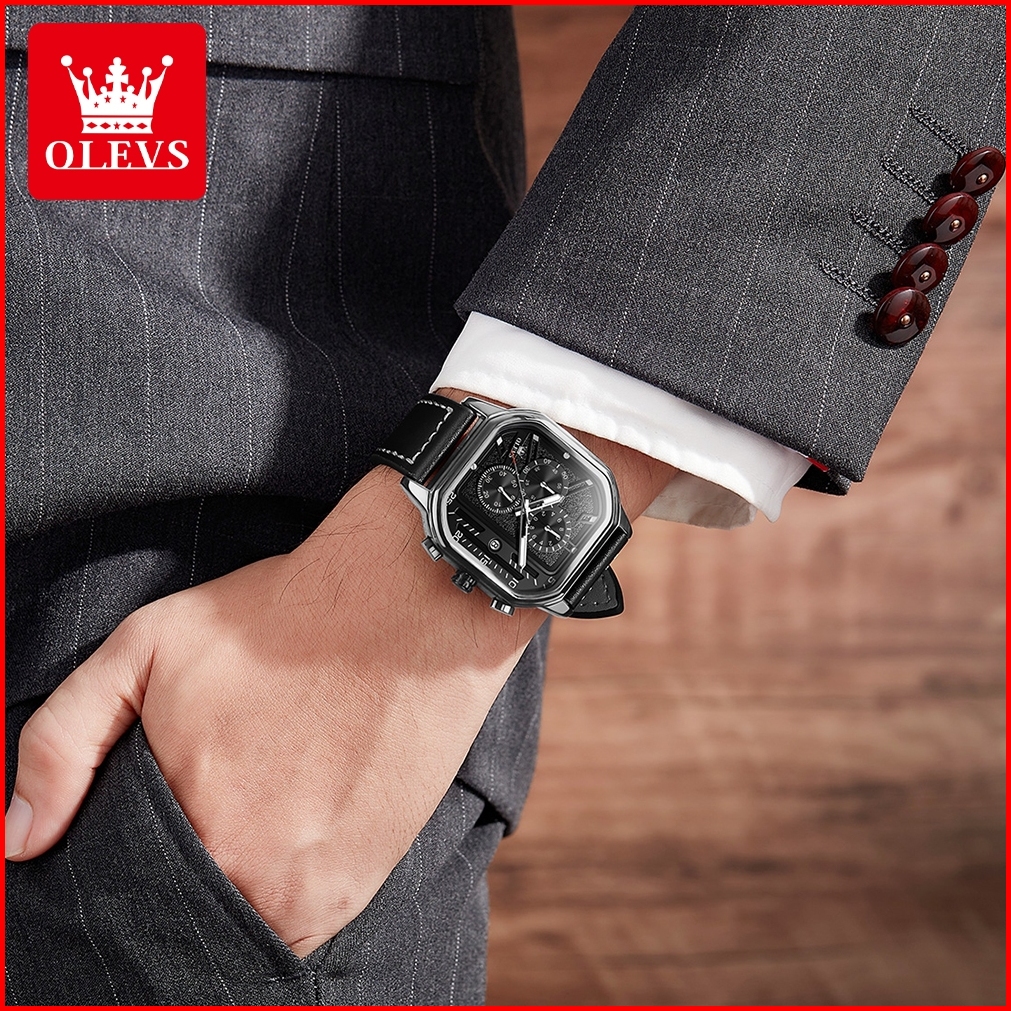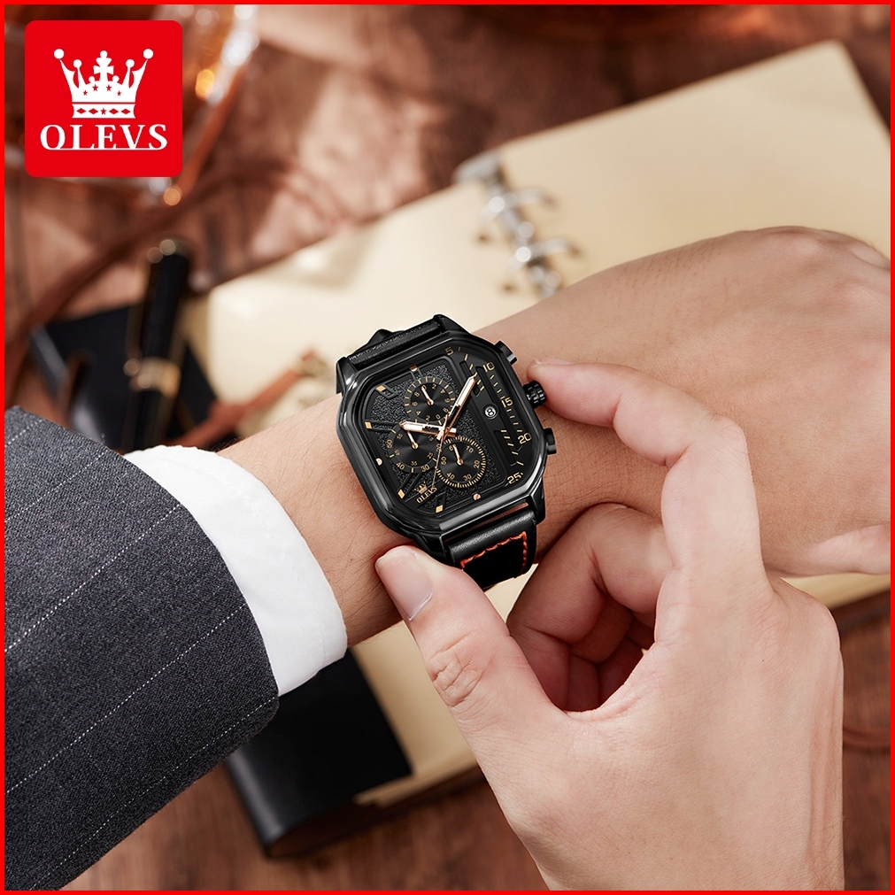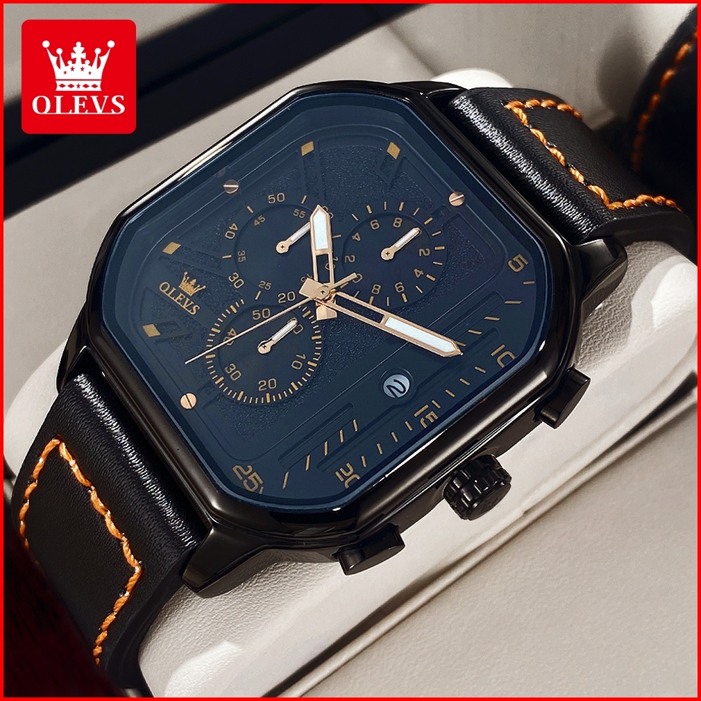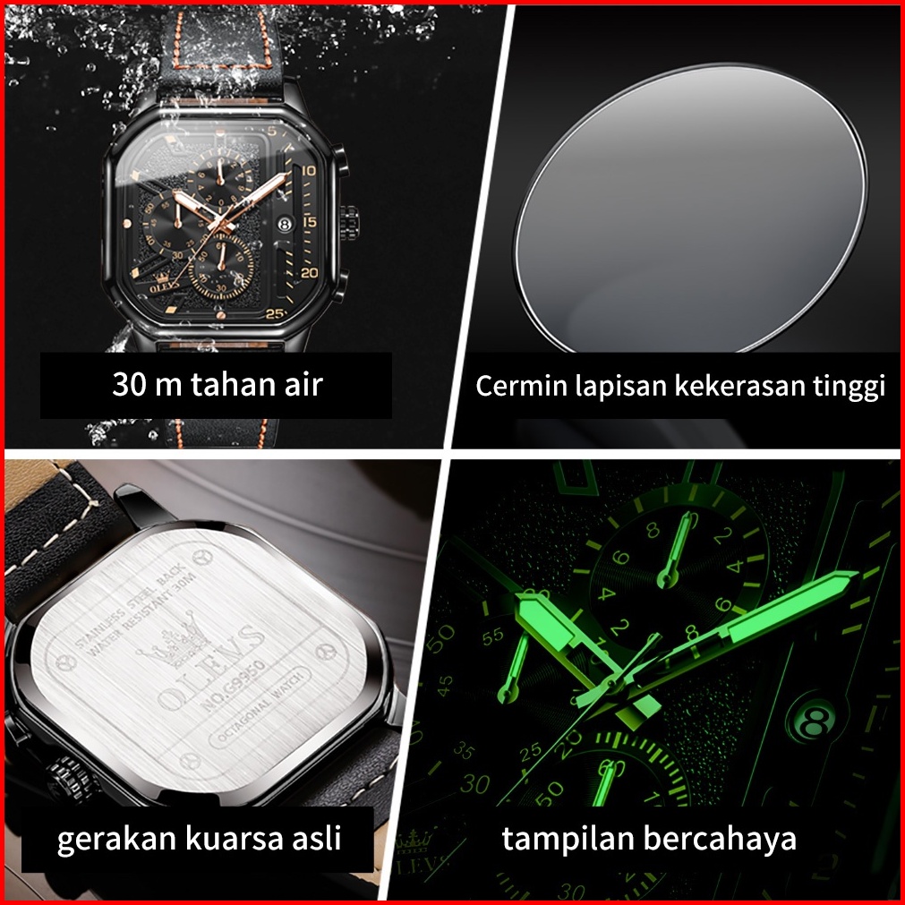Olevs Jam Tangan Pria Original Anti Air Mewah Tali Kulit Bercahaya Kalender Multifungsi Bisnis Watch Men 9950