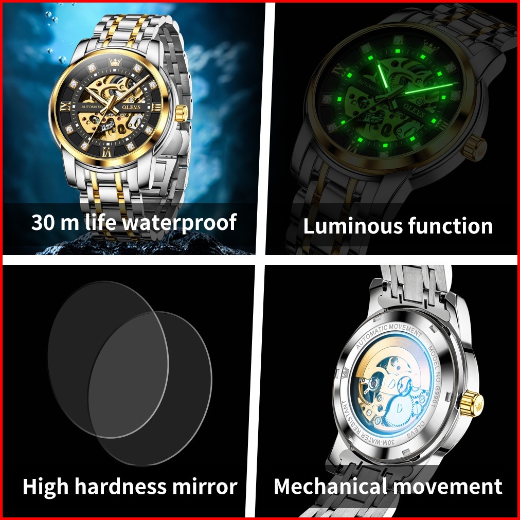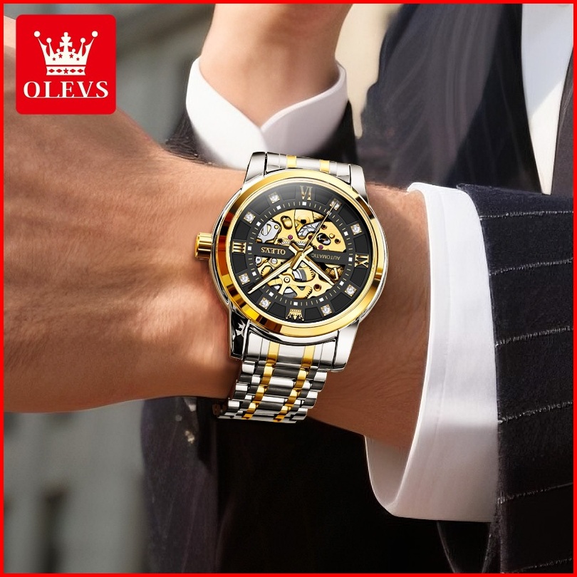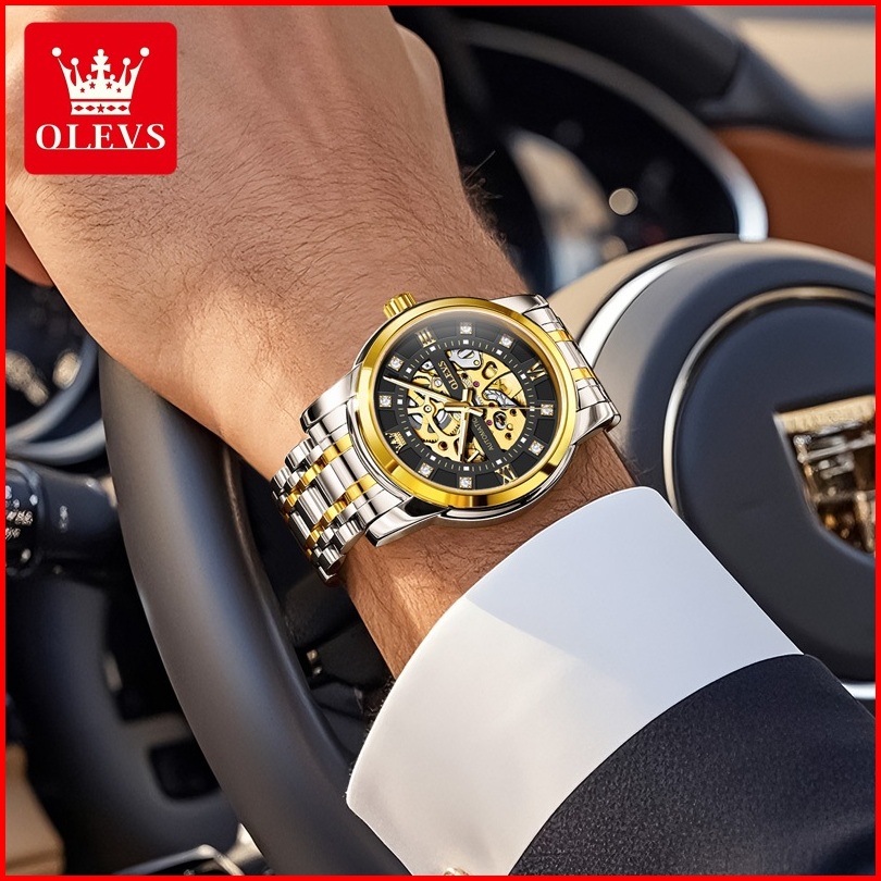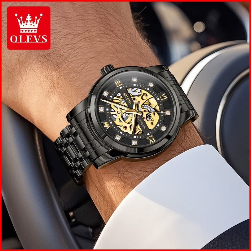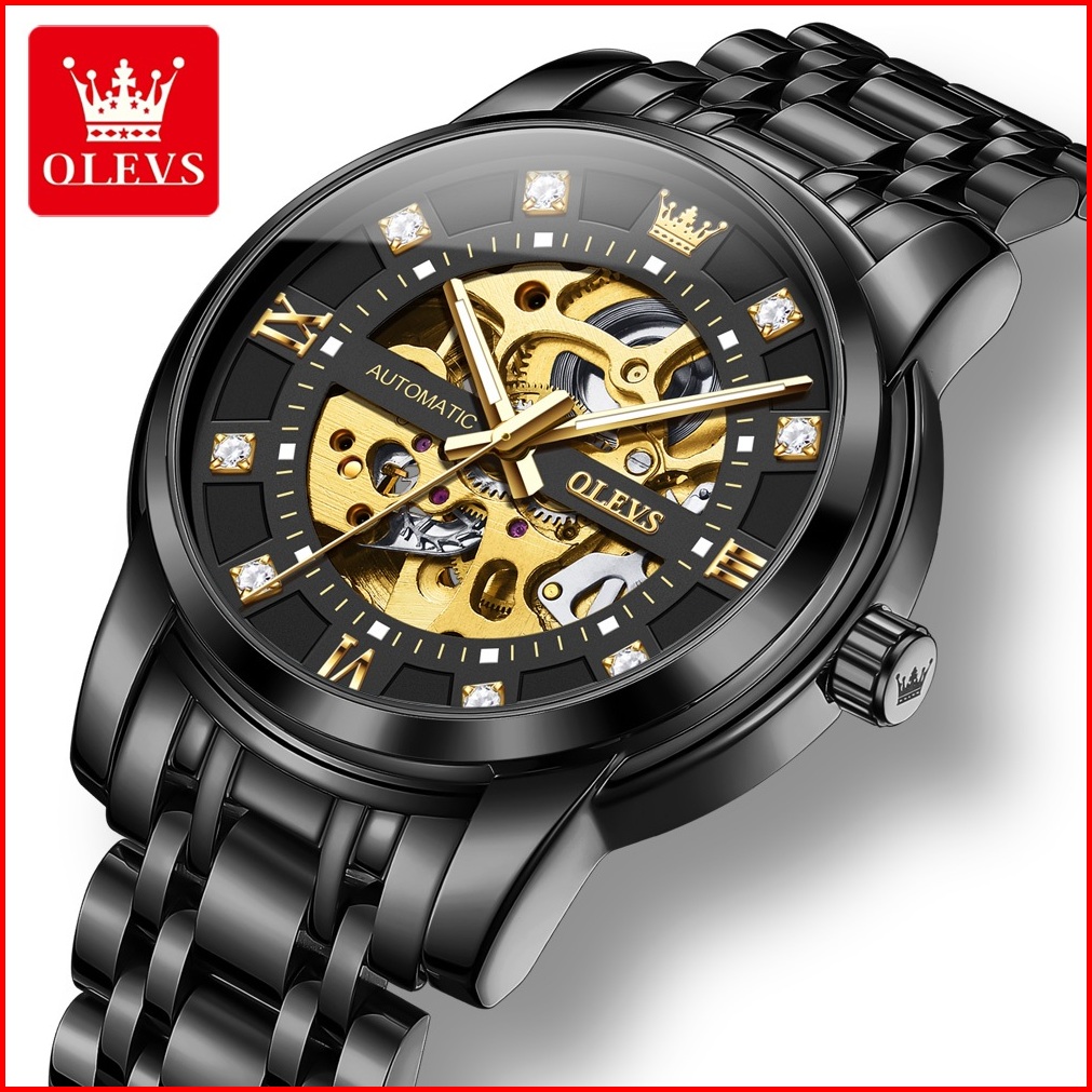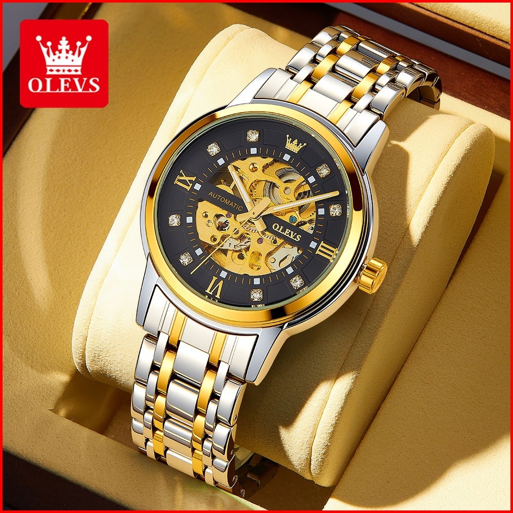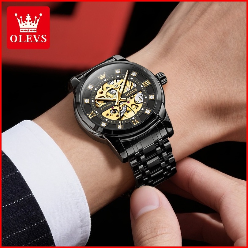 Olevs Jam Tangan Pria Mekanik Tahan Air Asli Otomatis Mekanik Mewah Tali Stainless Steel Automatic Mechanical Men Watch