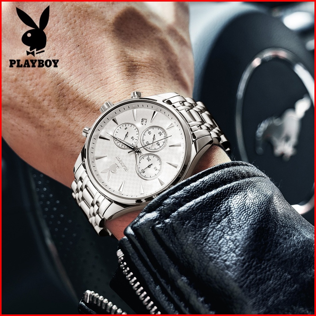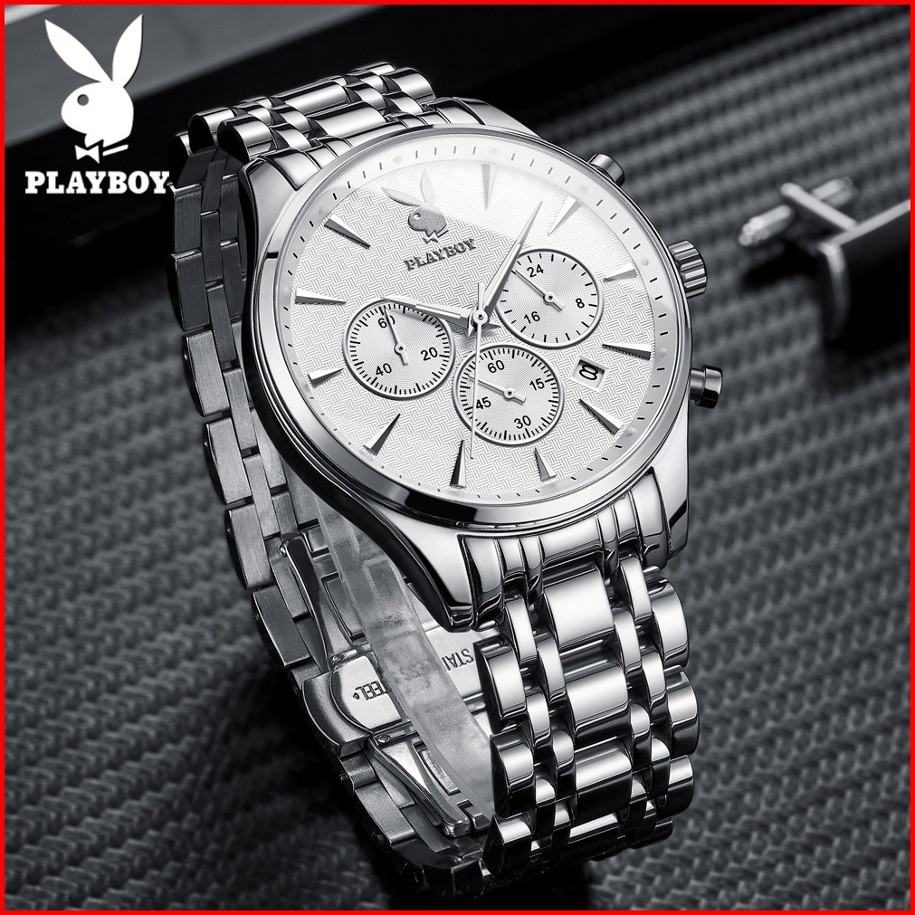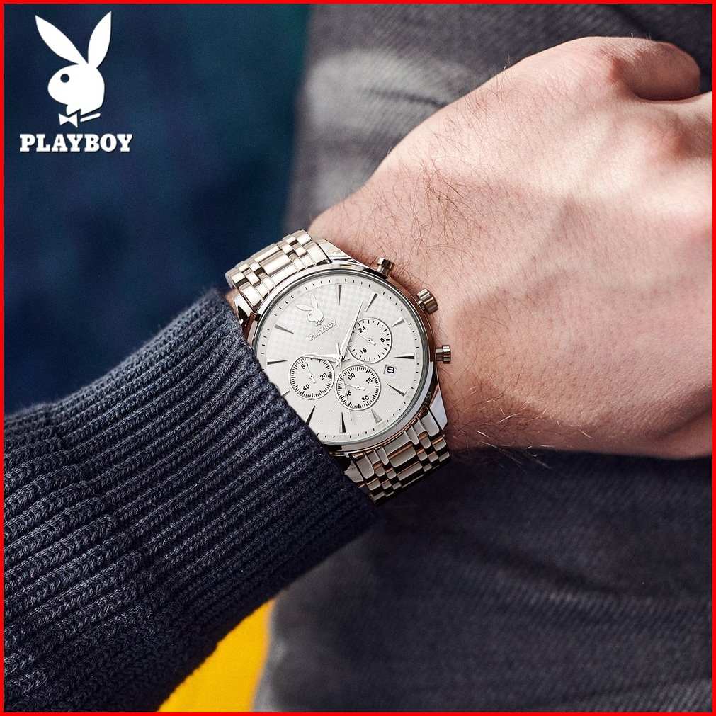 Playboy Jam Tangan Pria 100 Anti Air Original Kuarsa Rantai Keren Terbaru Mewah Hitam Biru Luxury Stainless Steel Chrono