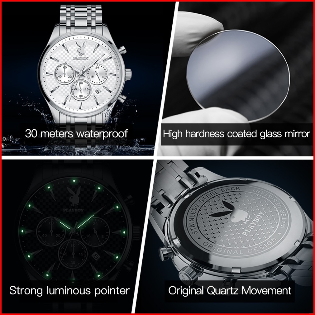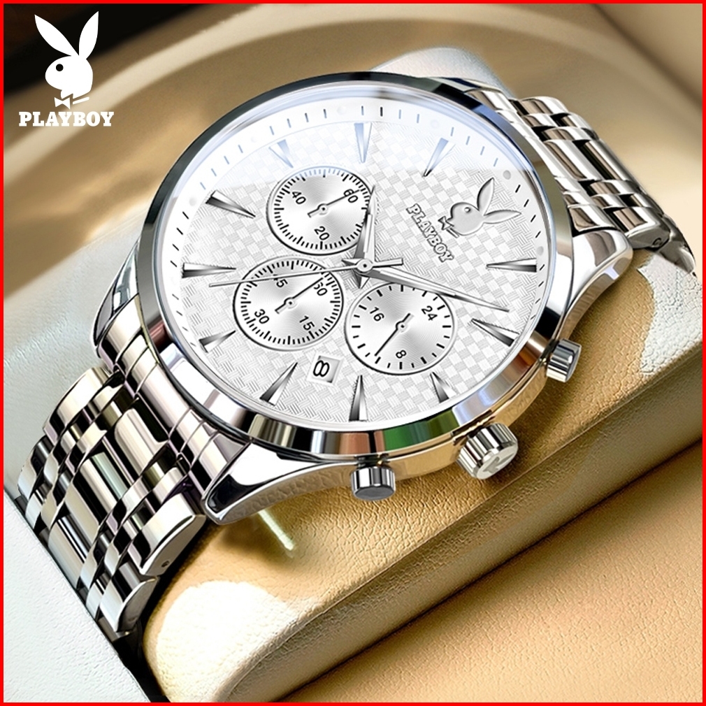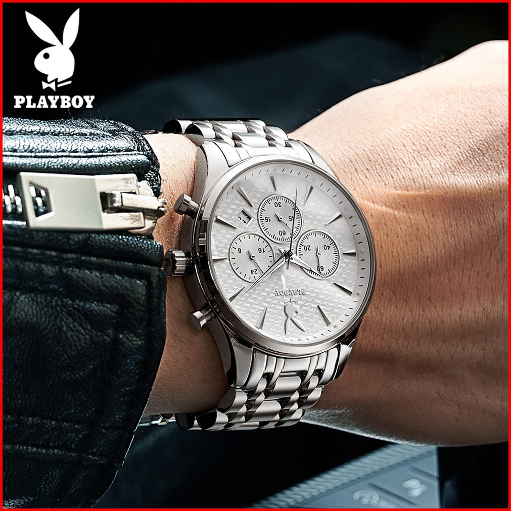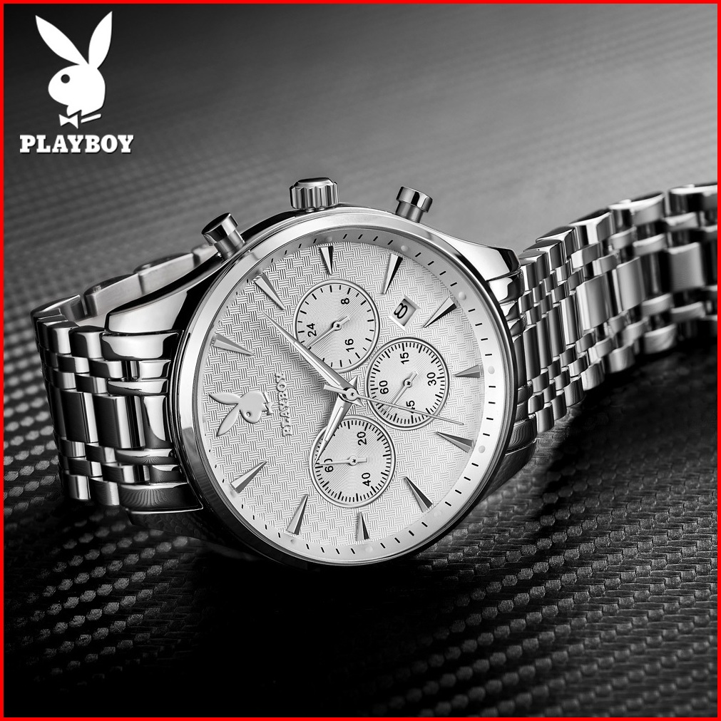 Playboy Jam Tangan Pria 100 Anti Air Original Kuarsa Rantai Keren Terbaru Mewah Hitam Biru Luxury Stainless Steel Chrono