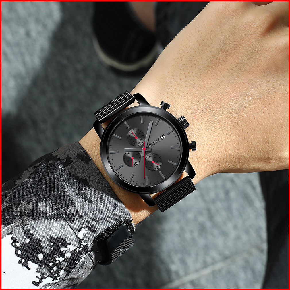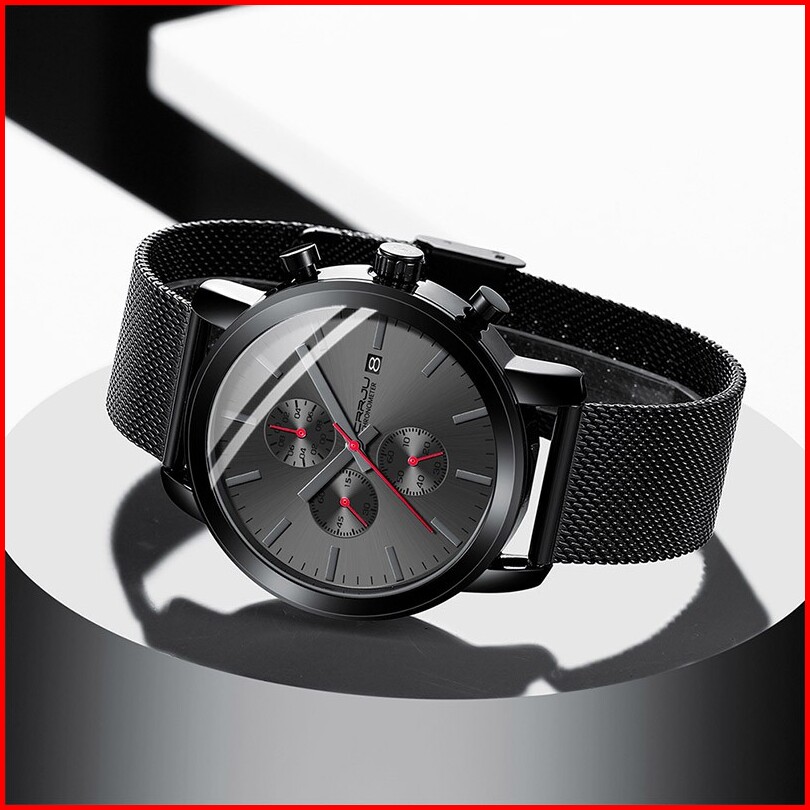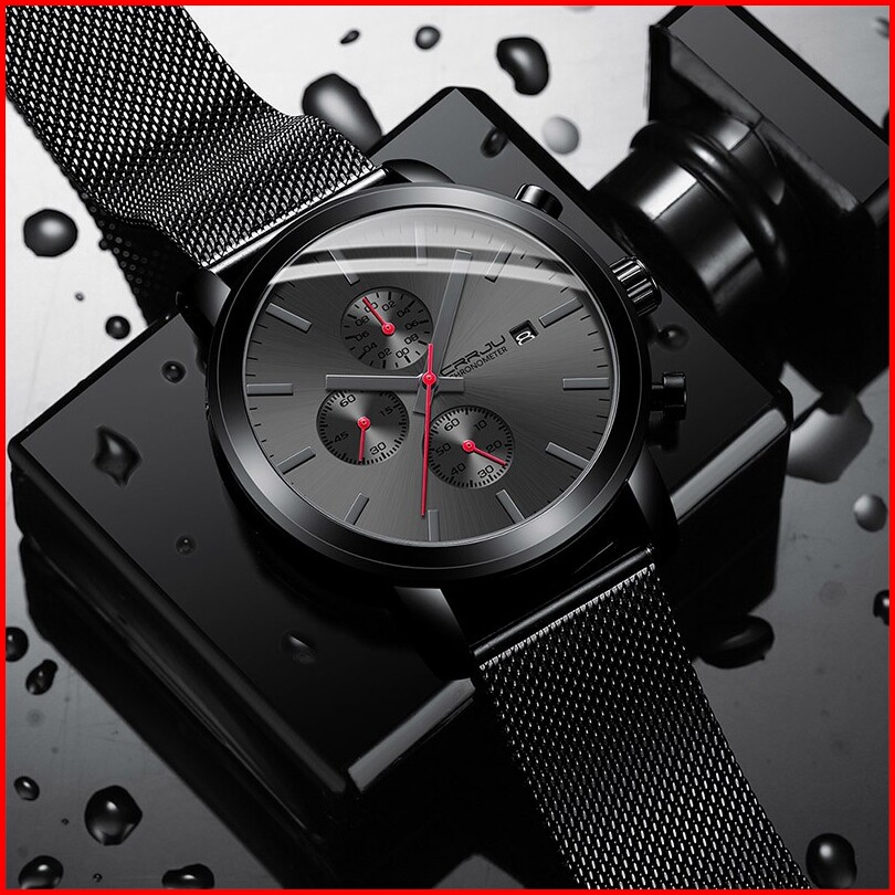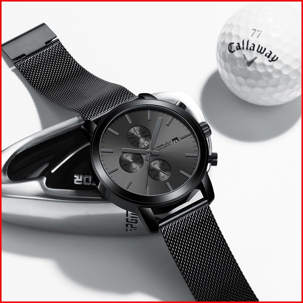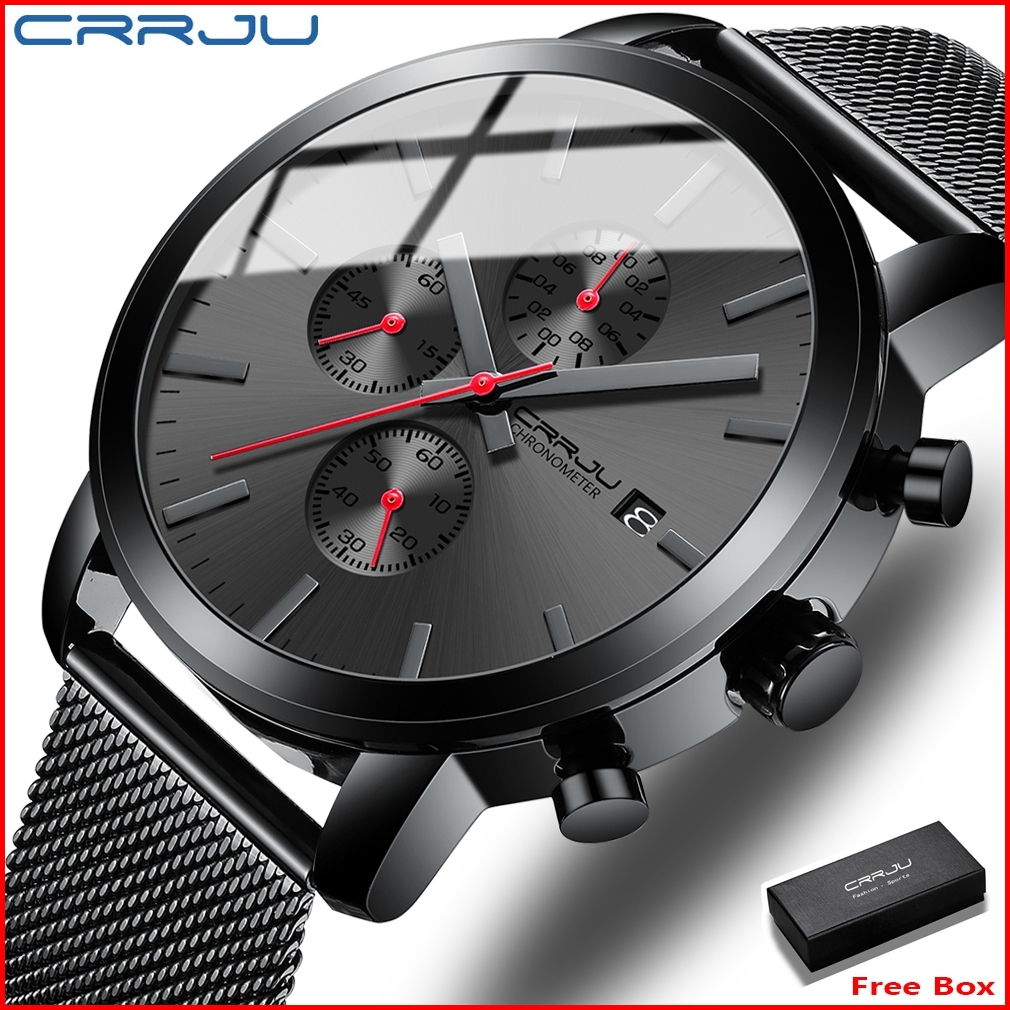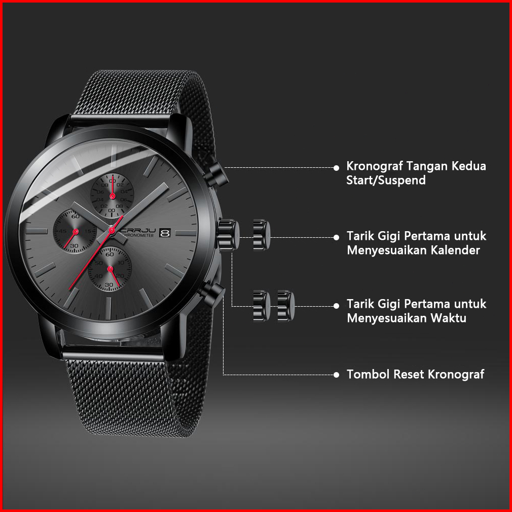 Crrju Jam Tangan Pria Bisnis Fashion Jam Tangan Cowok Stainless Steel Tahan Air Kronograf Multifungsi Asli Arloji