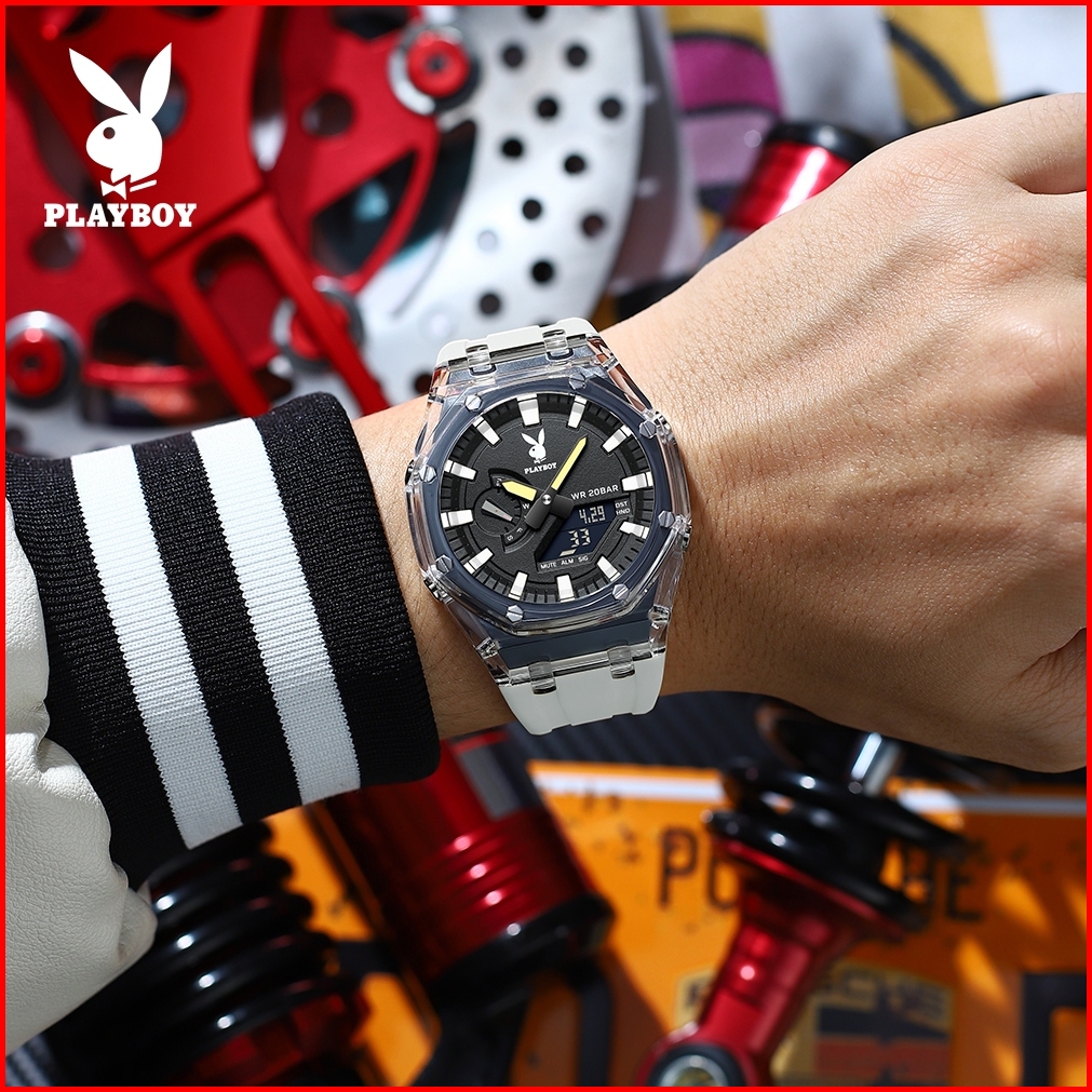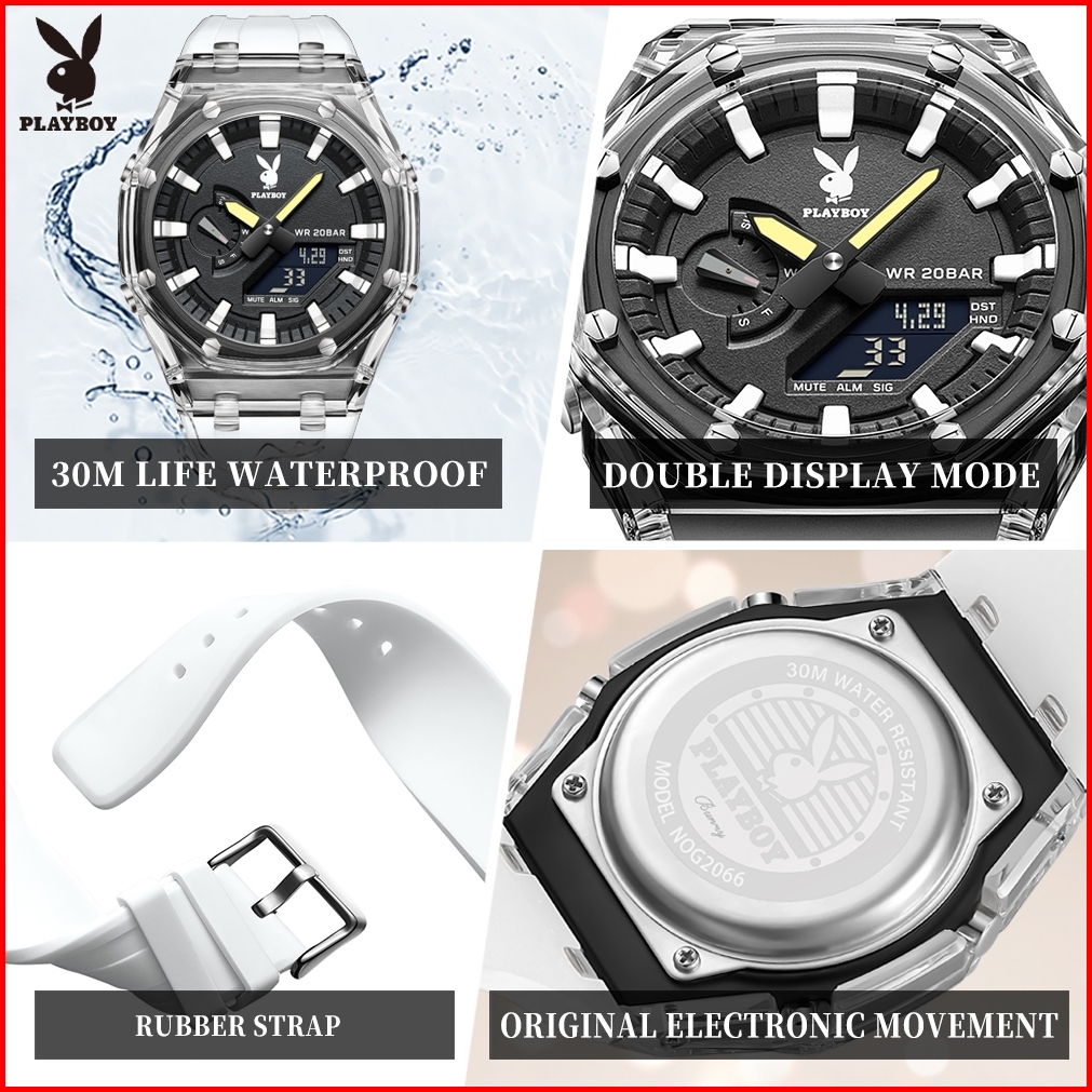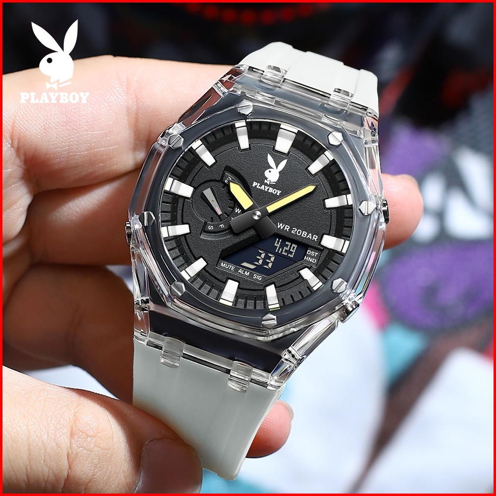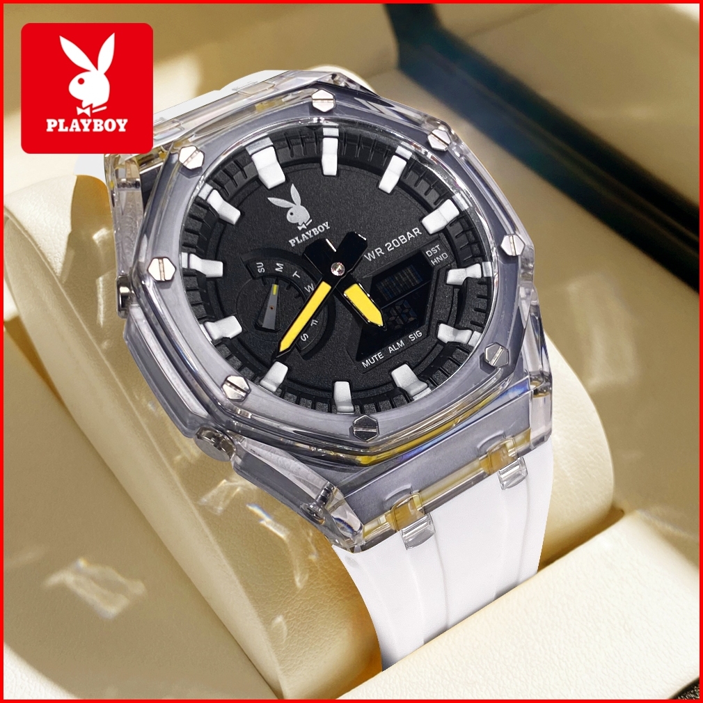 Playboy Jam Tangan Pria Anti Air Original Elektronik Tali Karet Jam Weker Luminous Analog Man Watch Model 2066