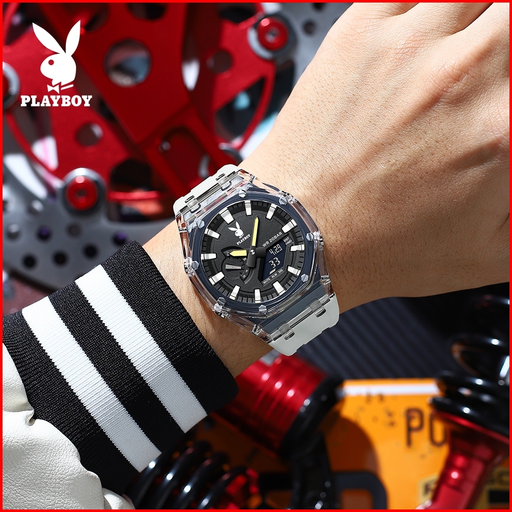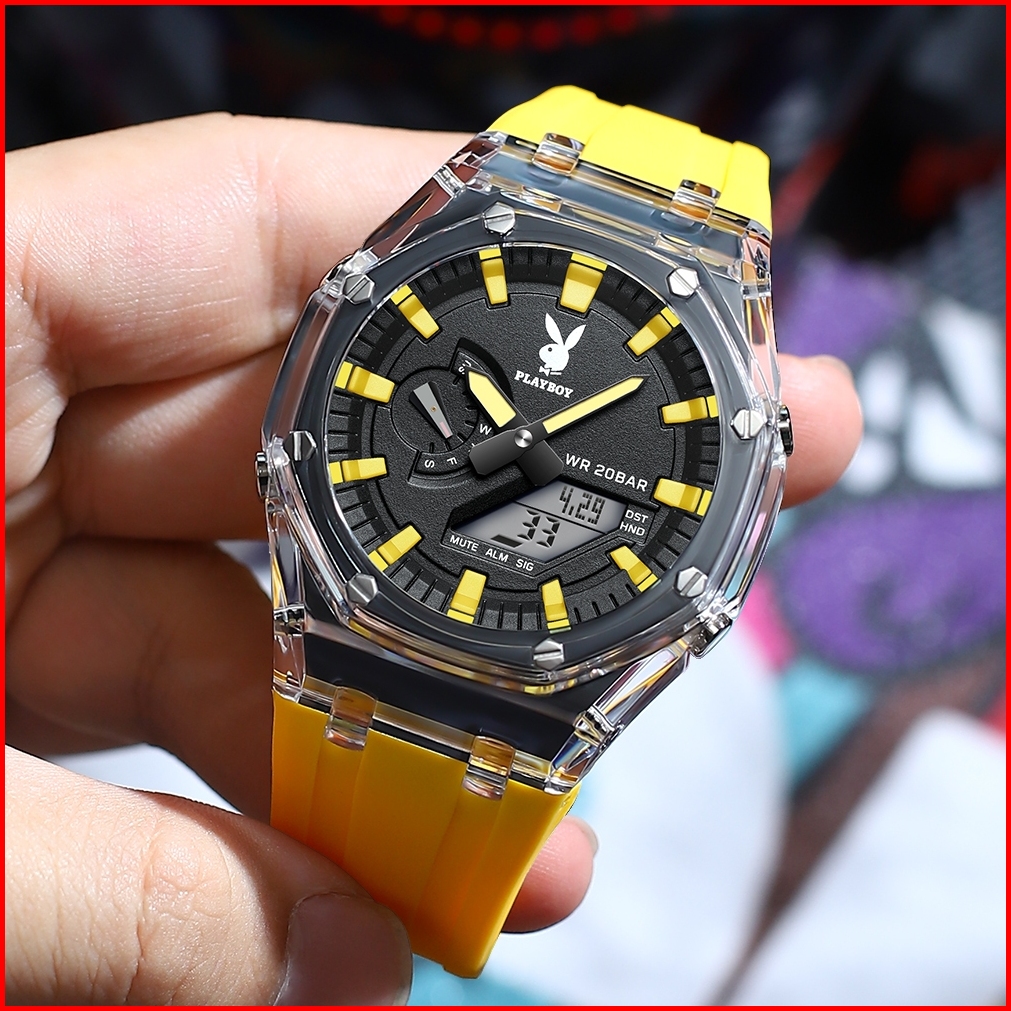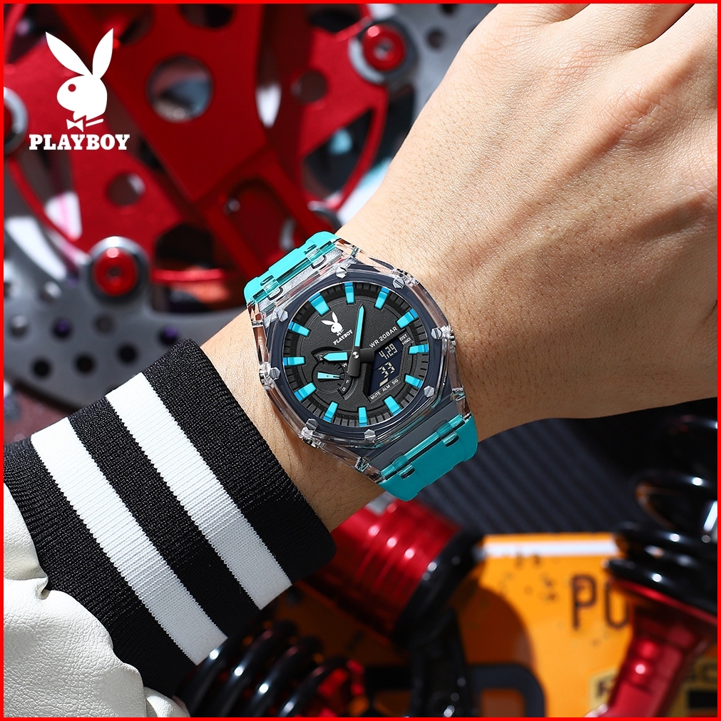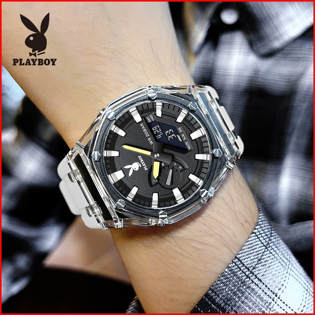 Playboy Jam Tangan Pria Anti Air Original Elektronik Tali Karet Jam Weker Luminous Analog Man Watch Model 2066