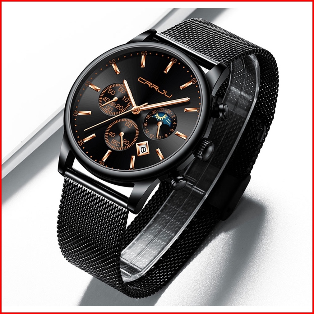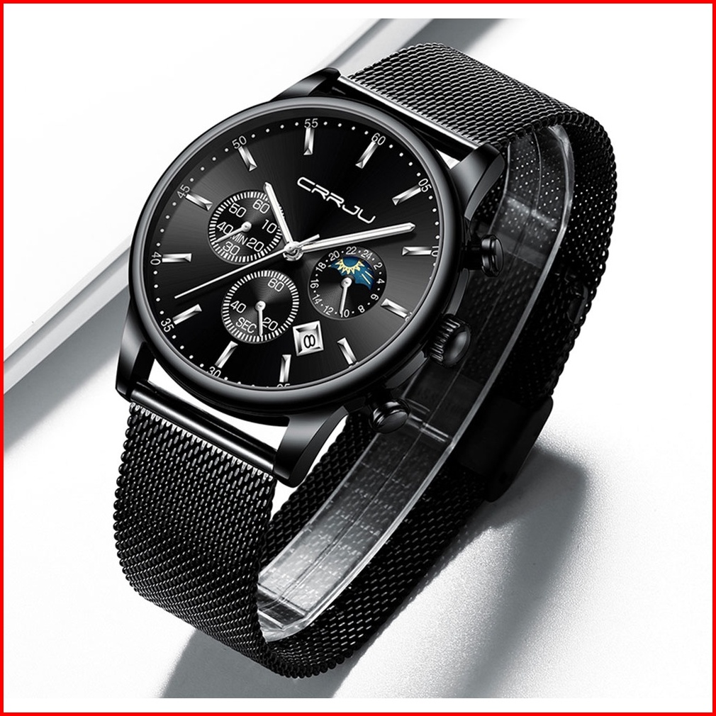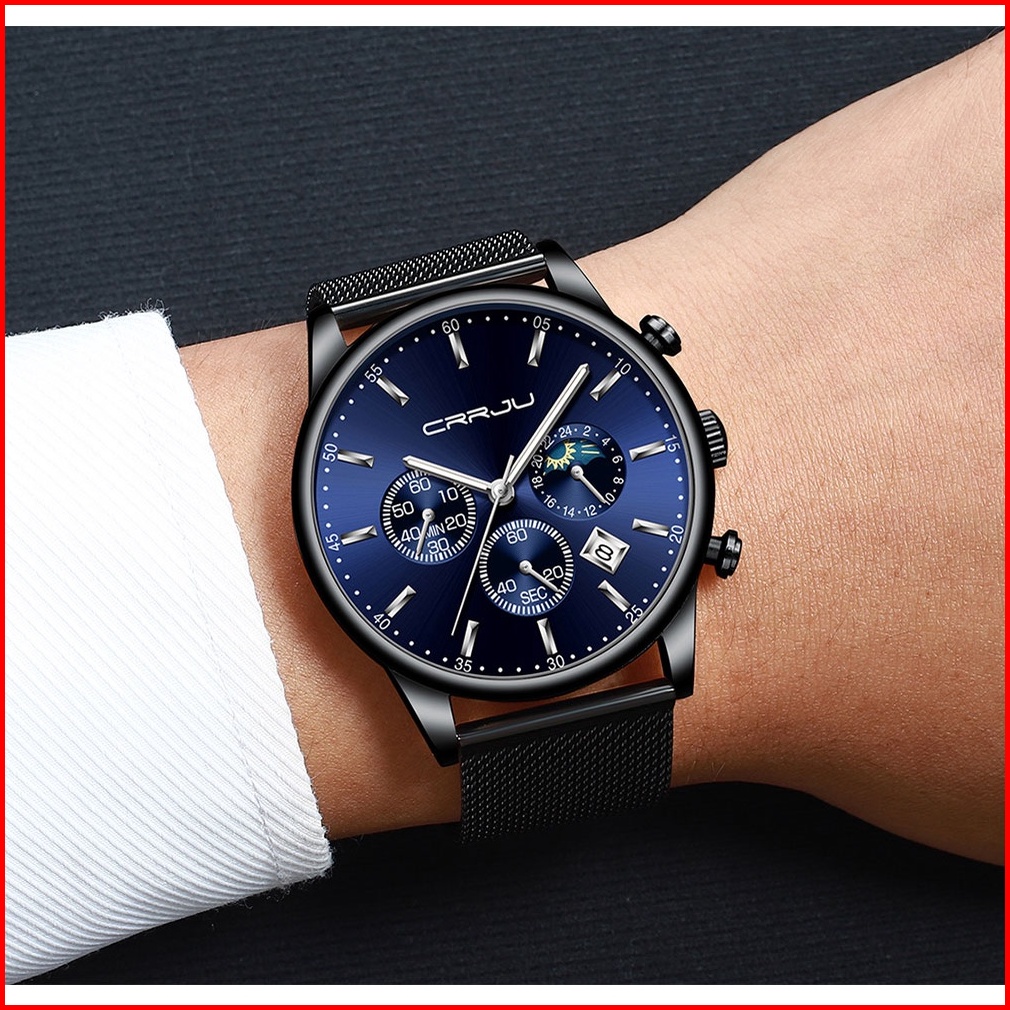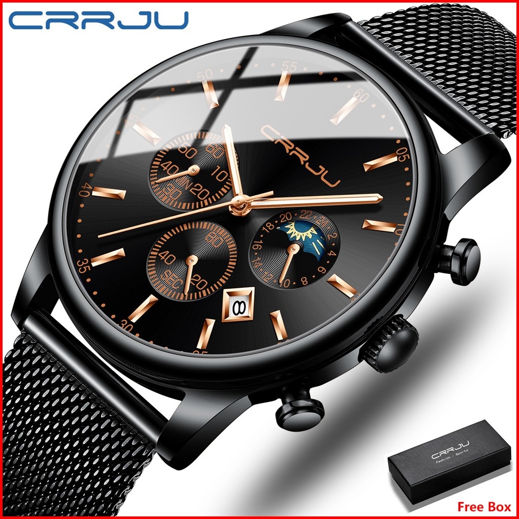 Crrju Jam Tangan Anti Air Pria Terbaru Olahraga Kronograf Tali Stainless Steel Sports Jam Tangan Men S Auto Date Clock