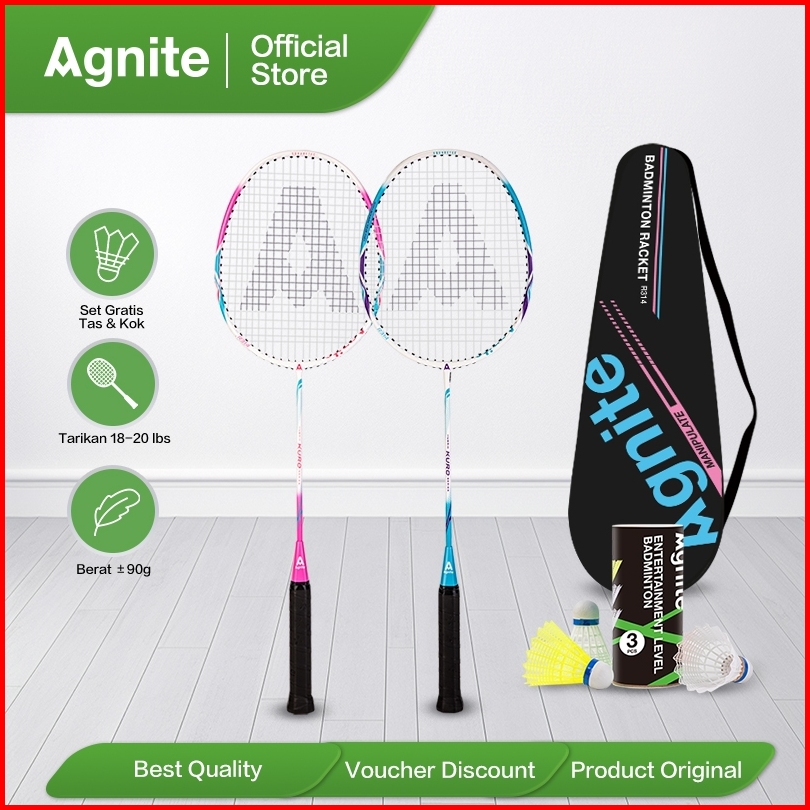 Agnite Badminton Racket Raket Badminton Raket Bulu Tangkis Isi 2 Gratis Kok Carbon Alumunium Er314