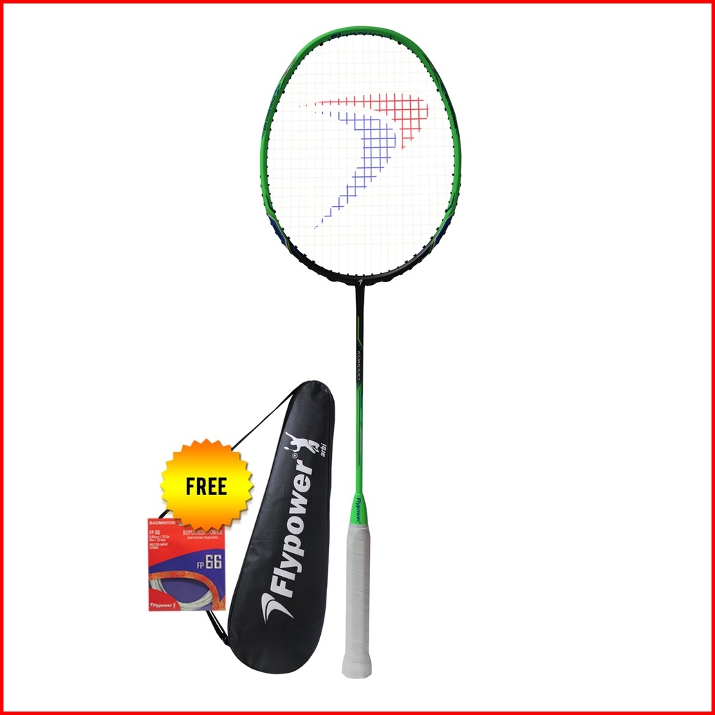 Flypower Komodo Raket Badminton - Black Green Free Tas