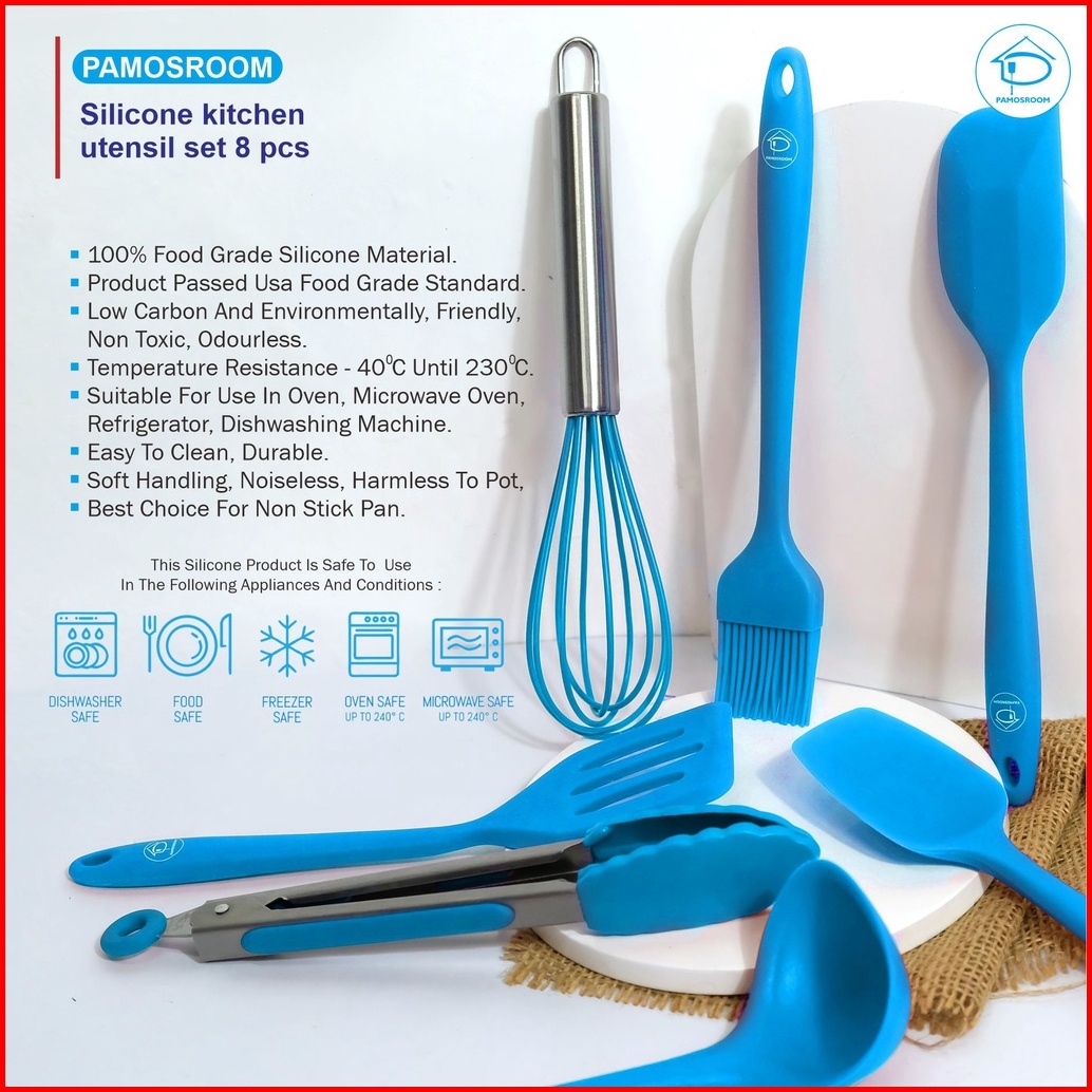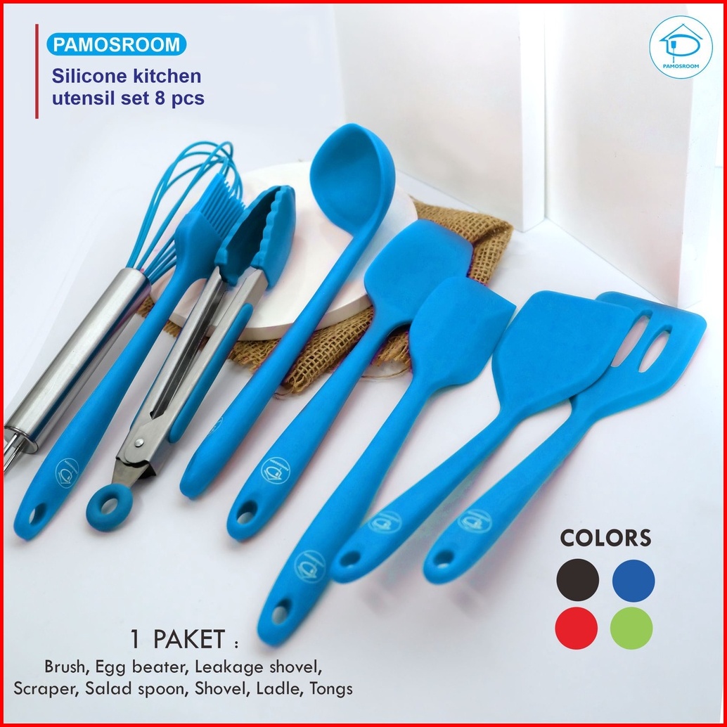 Pamosroom Baking Props 1set 8pcs Alat Masak Spatula Sutil Silikon Tahan Panas Silicone Kitchen Utensils 8pcs In 1set