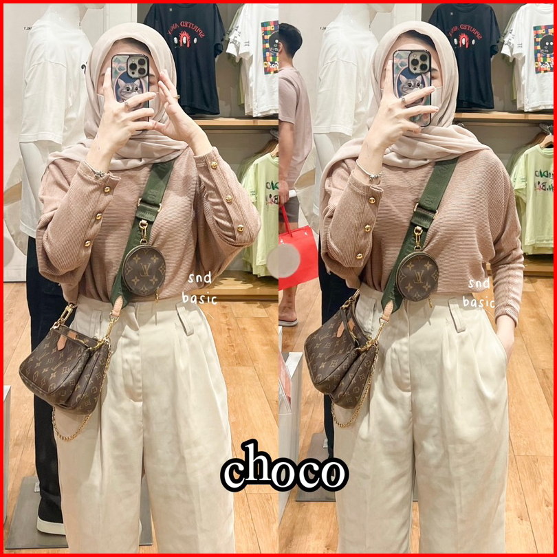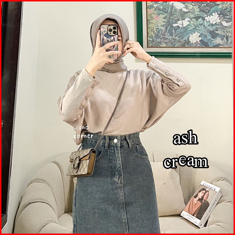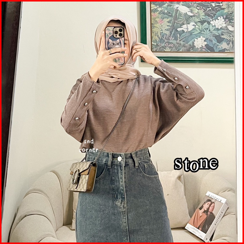 Batwing Knit Button Top Atasan Wanita Blus Lengan Kancing Rajut Premium Model Kelelawar Jumbo Bigsize