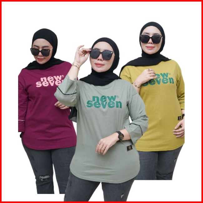 Gumon.inc Kaos Atasan Wanita Tshirt Oversize New Seven Basic Semi Oval Lengan 7 8 Katun Combed 20s Premium